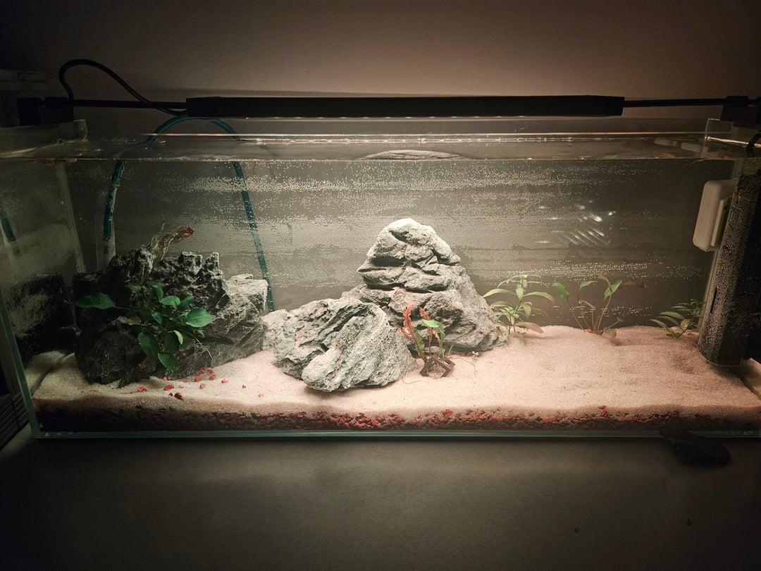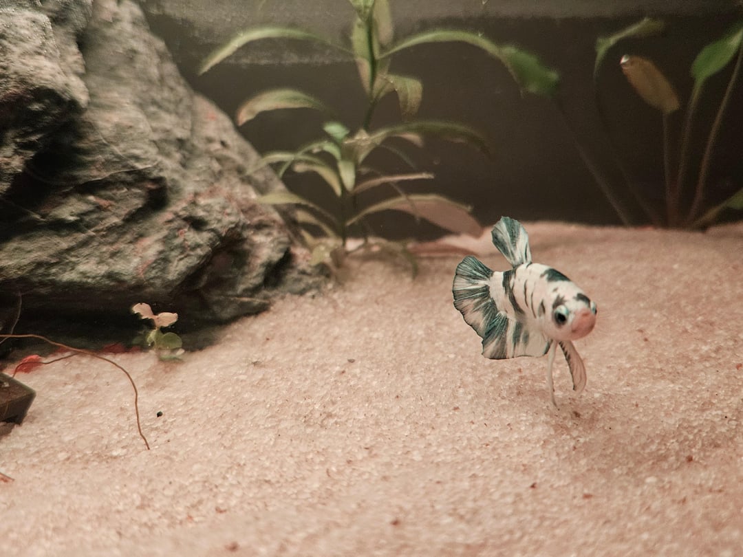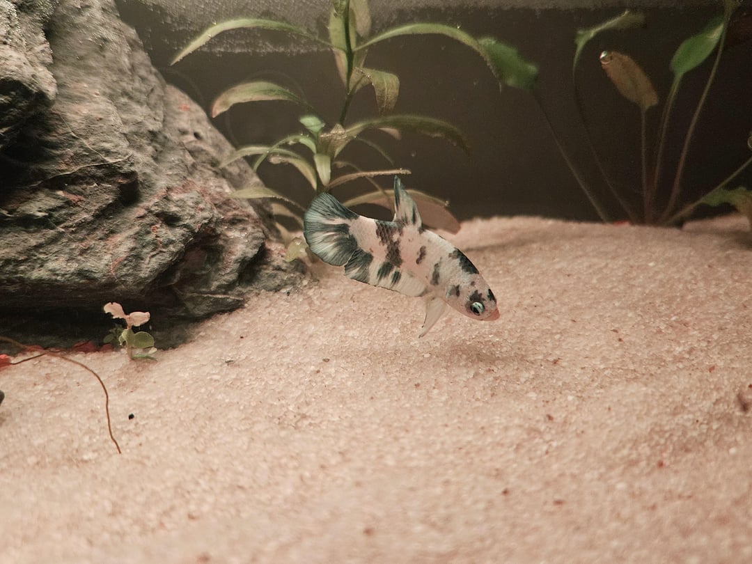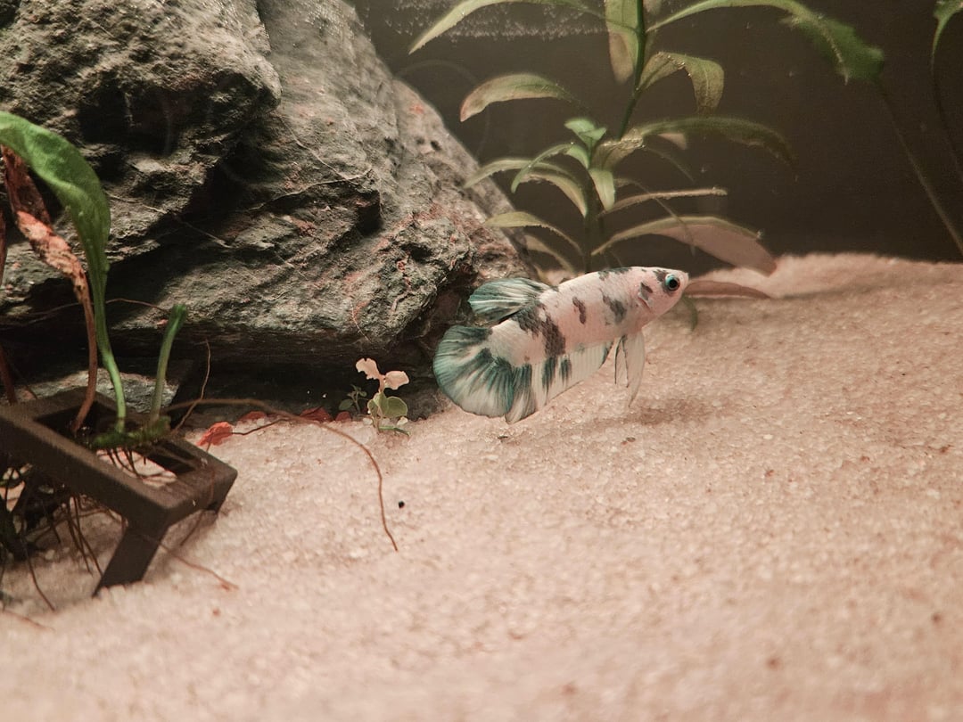 He’s sooooo cute. I love the plakat tails. I have 8 HMPKs and one Halfmoon. Don’t let other people discourage you. Buy what plants you can afford a little at a time. Its easy to go over budget on plants all at once. Perfect size tank too