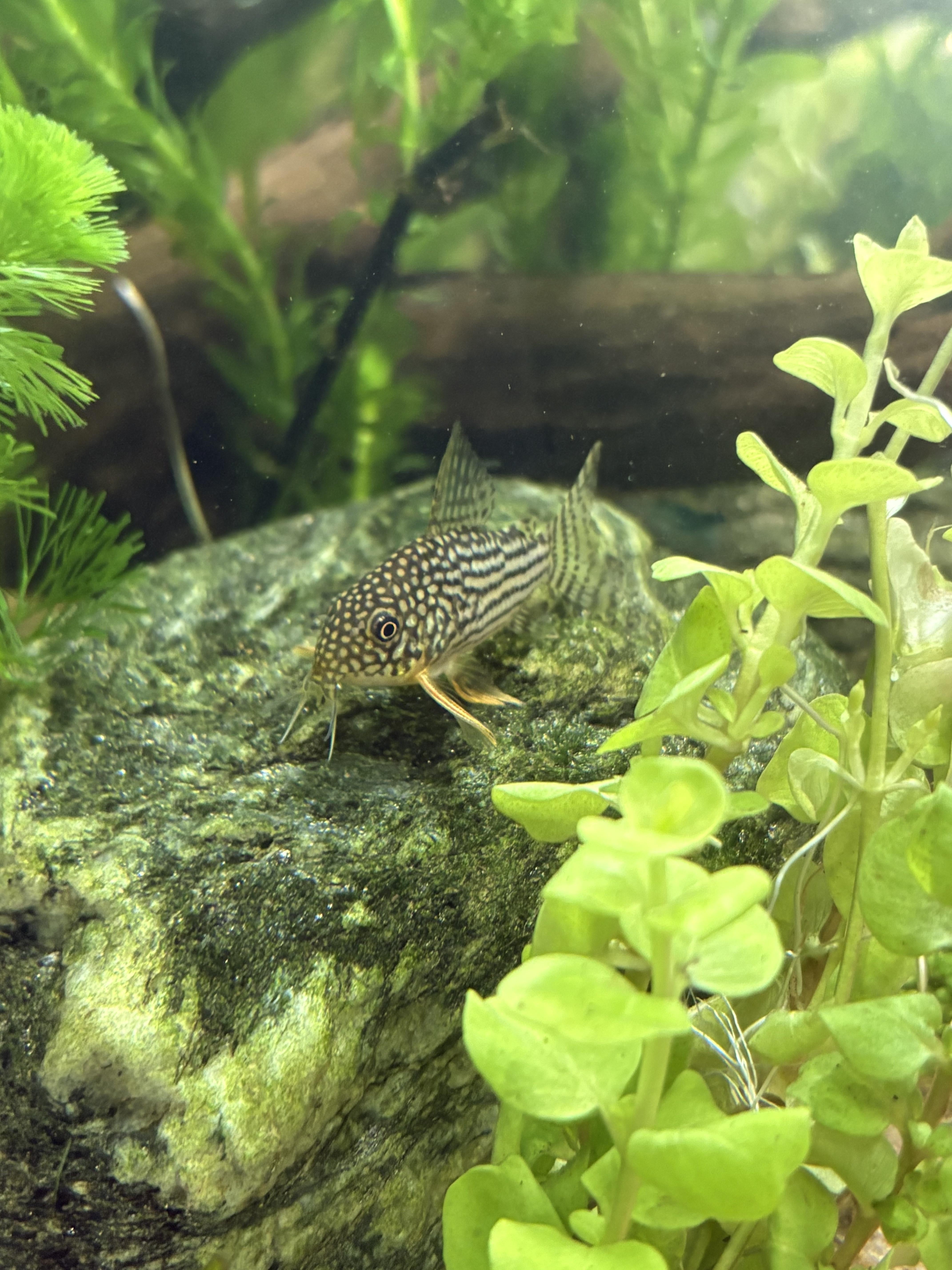 This is Catticus the Sterbai Cory cat, pictured upon his thinking rock. I dunno what he thinks about, but my money’s on worms. Posted by MyPrizedSpork