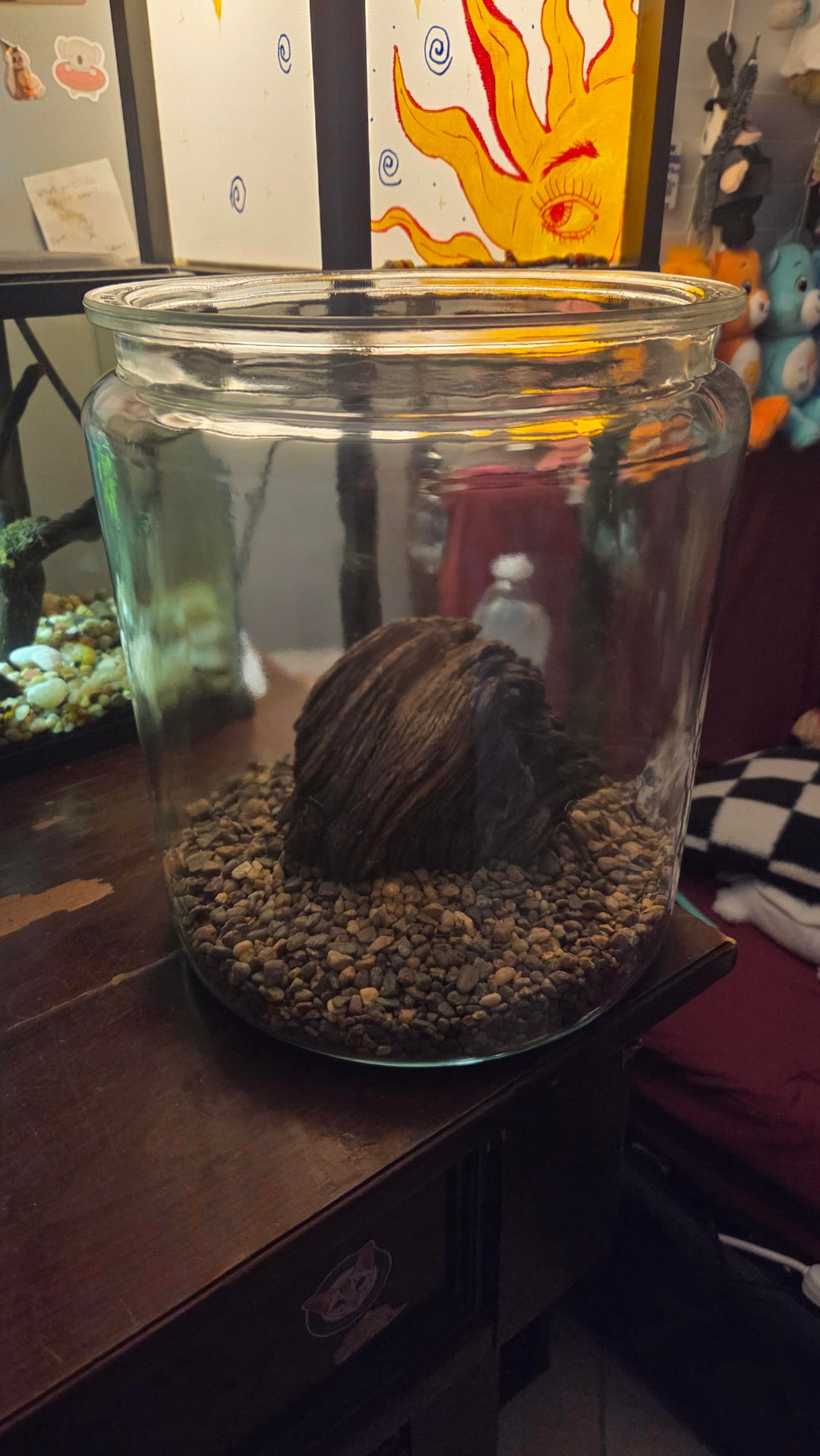 Such a hard choice tbh😭 the round one would look so beautiful with moss growing on it like a hill, but the tall one would look so cool with moss on top like a ‘tree’. Imma go with the 1st one on this but I’d immediately set up another jar for the other driftwood lol