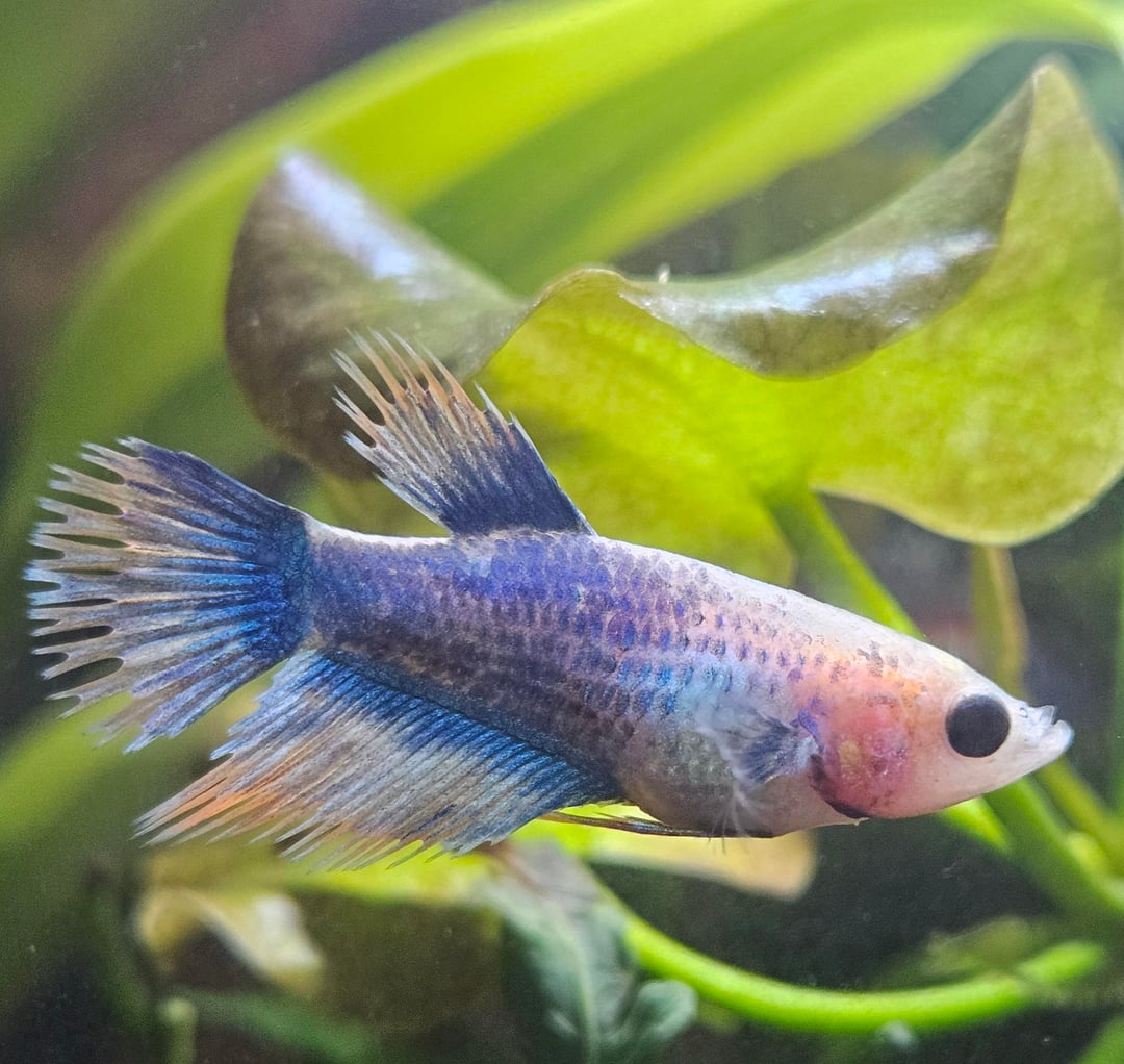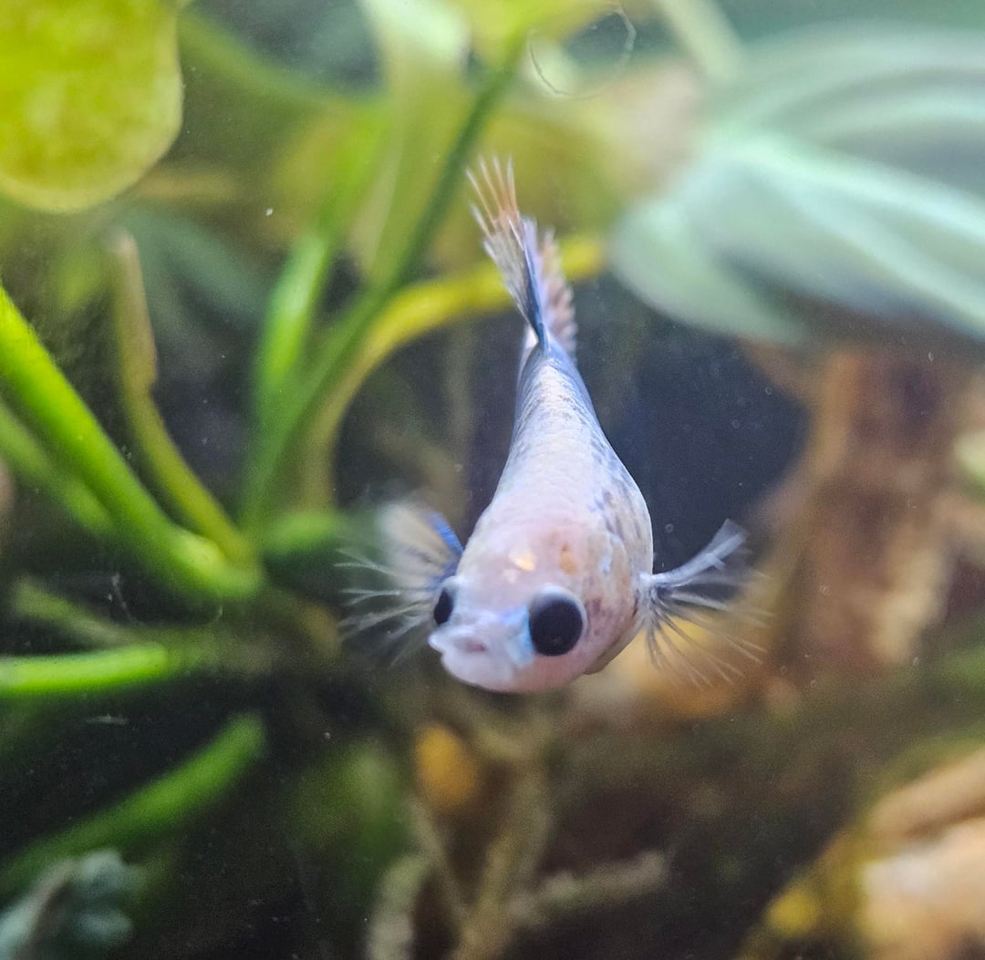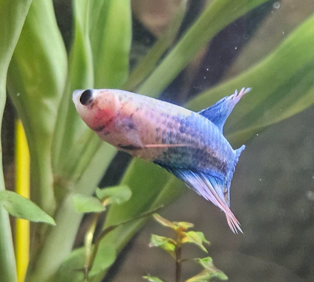 Picked this absolute darling out of a crowded tank at my lfs. I don't even know how to describe her coloring. I see more colors every time I look at her and am so excited to see how she brightens up. She comes up to greet me whenever I'm in front of her tank and is super chill around the ramshorns who share her space. I really feel like I hit the jackpot with her.