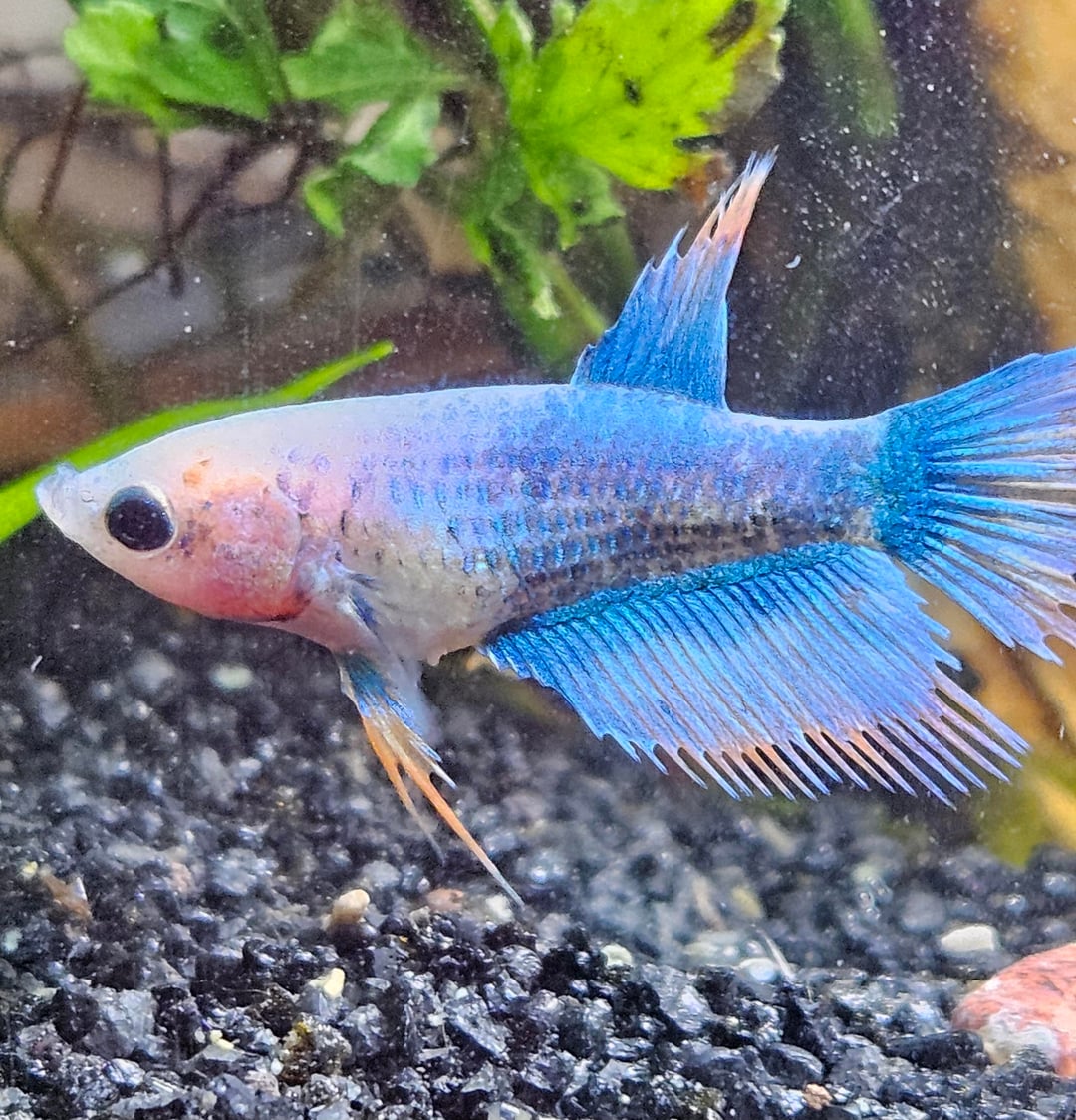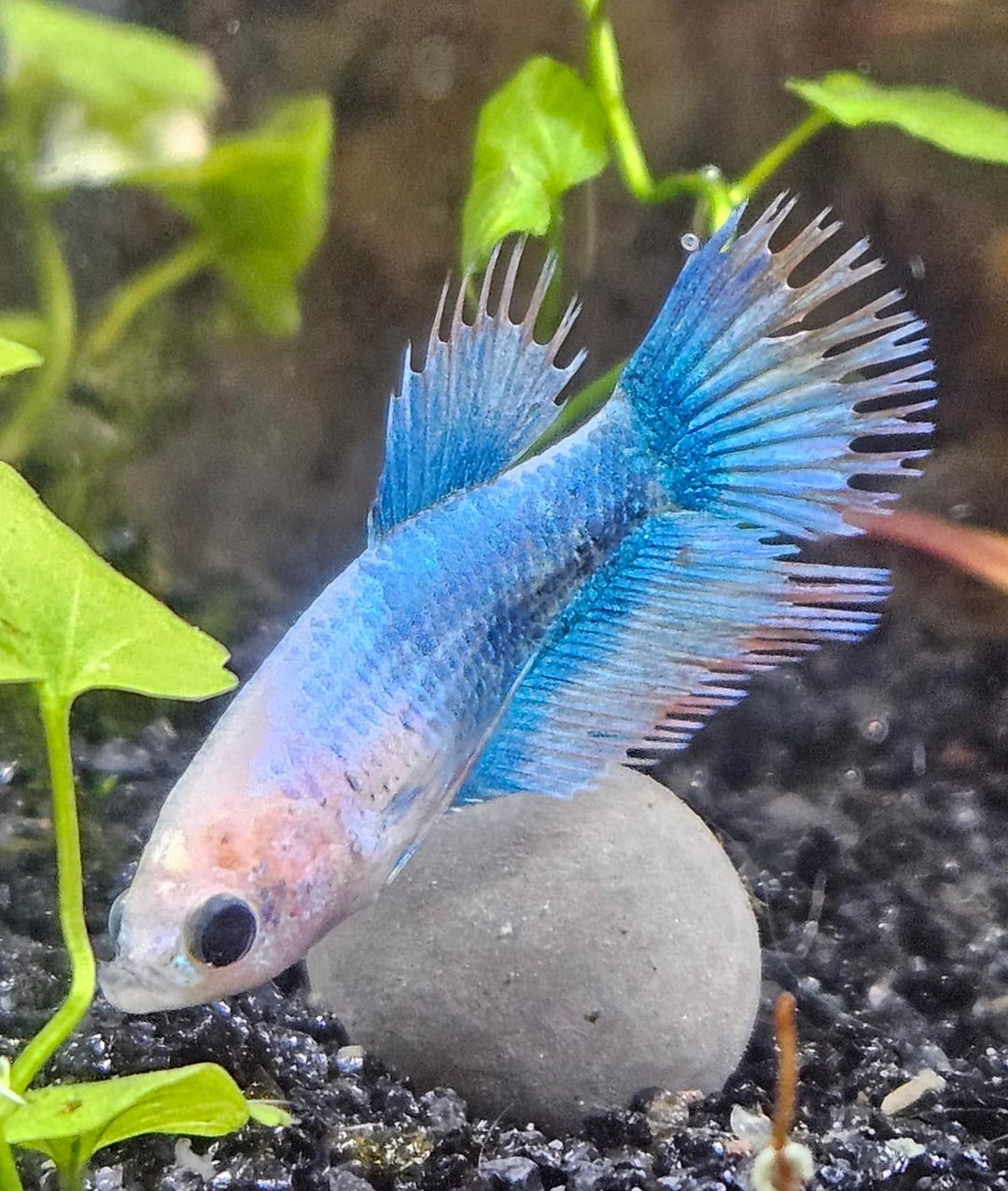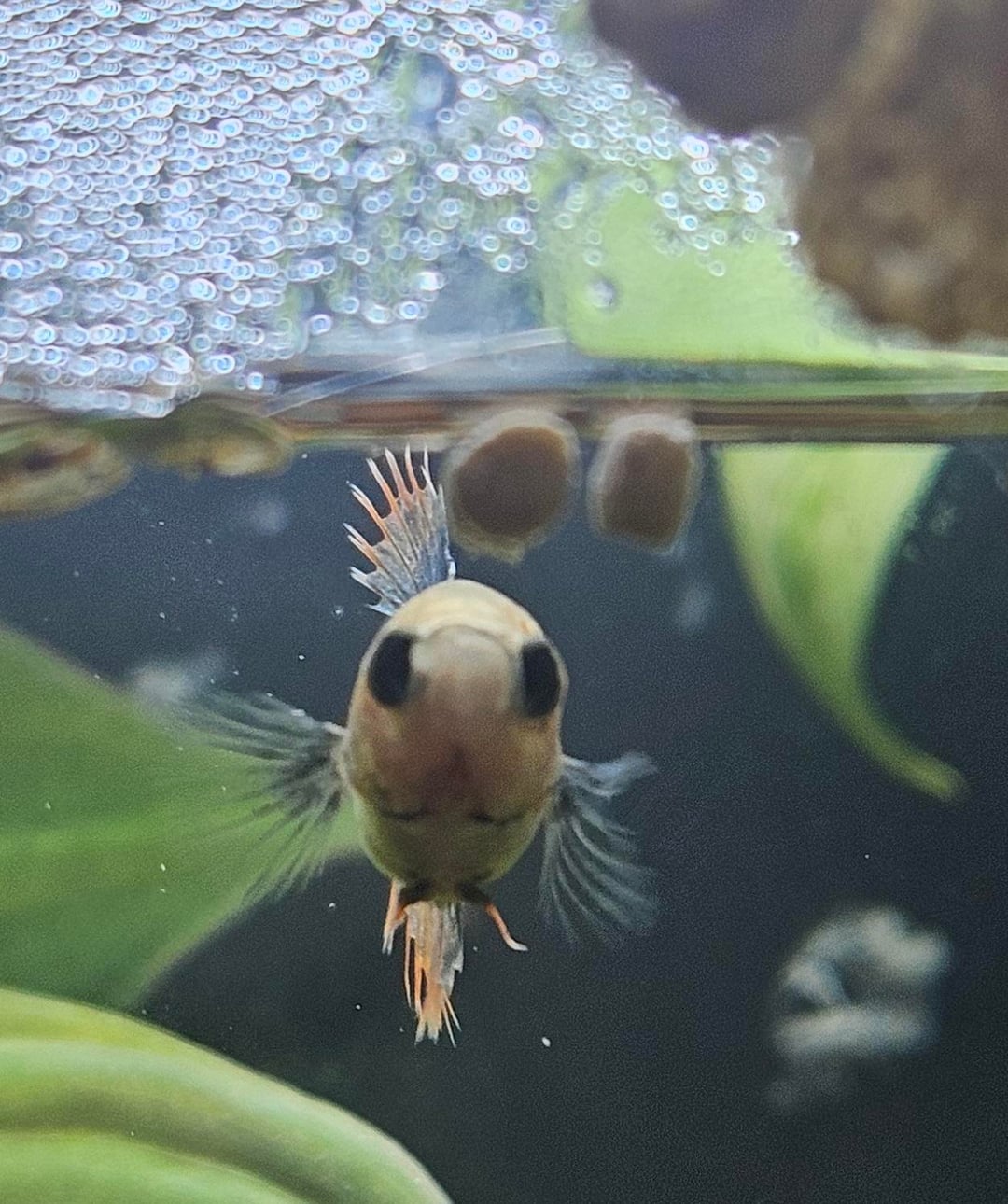 Picked this absolute darling out of a crowded tank at my lfs. I don't even know how to describe her coloring. I see more colors every time I look at her and am so excited to see how she brightens up. She comes up to greet me whenever I'm in front of her tank and is super chill around the ramshorns who share her space. I really feel like I hit the jackpot with her.