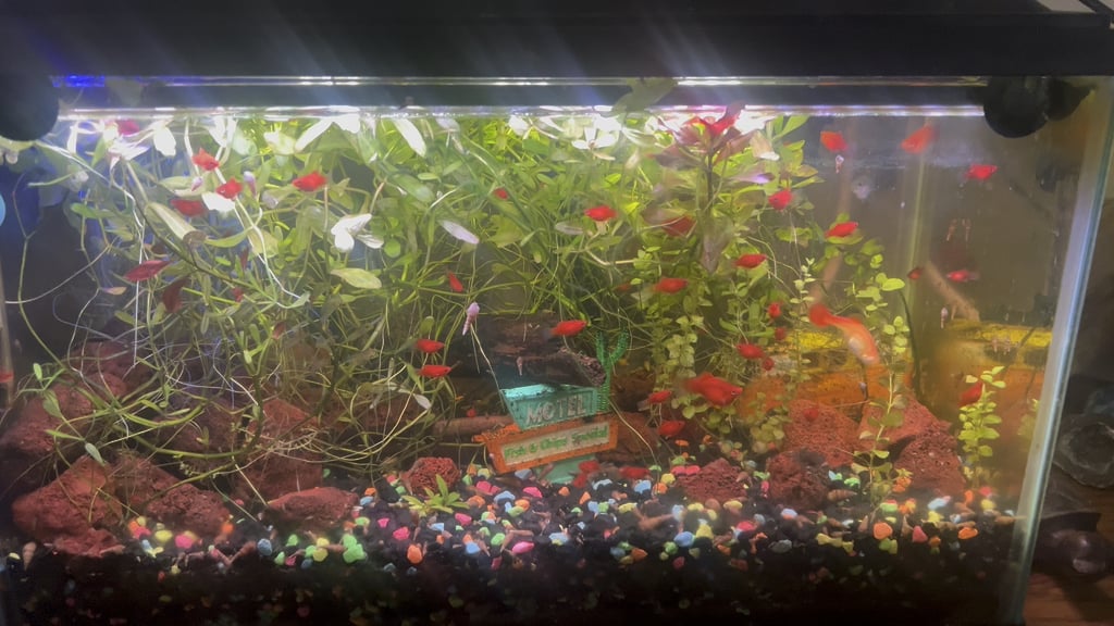Started with 4. I have been trying to give/sell some but no luck. Will give some to the local pet store once they a bigger.
