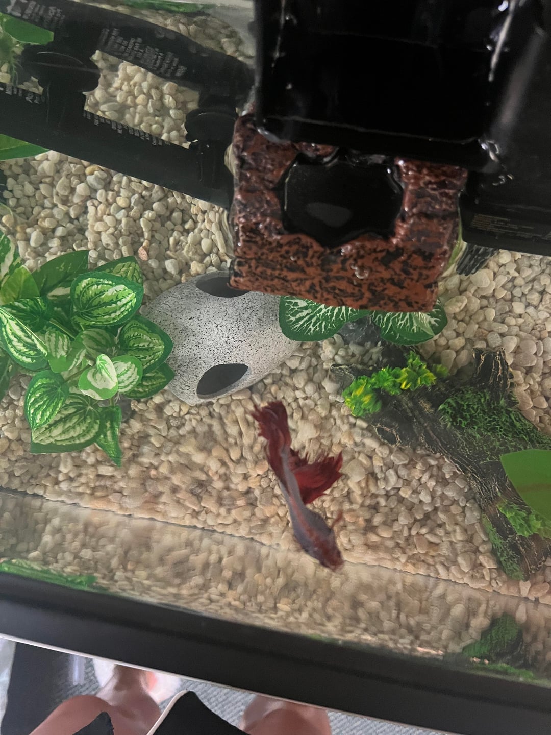 this is my betta, Gerard, I’ve had him for about a year and a half, and i noticed it looked like he’s been getting fat despite feeding the usually amount, 2-4 pellets of the fluval bug bites food twice a day. it looks to me like his left side is bulging out more than the right and i don’t know how to determine if he has a tumor or i’ve just been feeding too much. i love him so much and want to do the best thing for him!! i’m sorry for the unclear pictures, they’re the best my phone could get.
