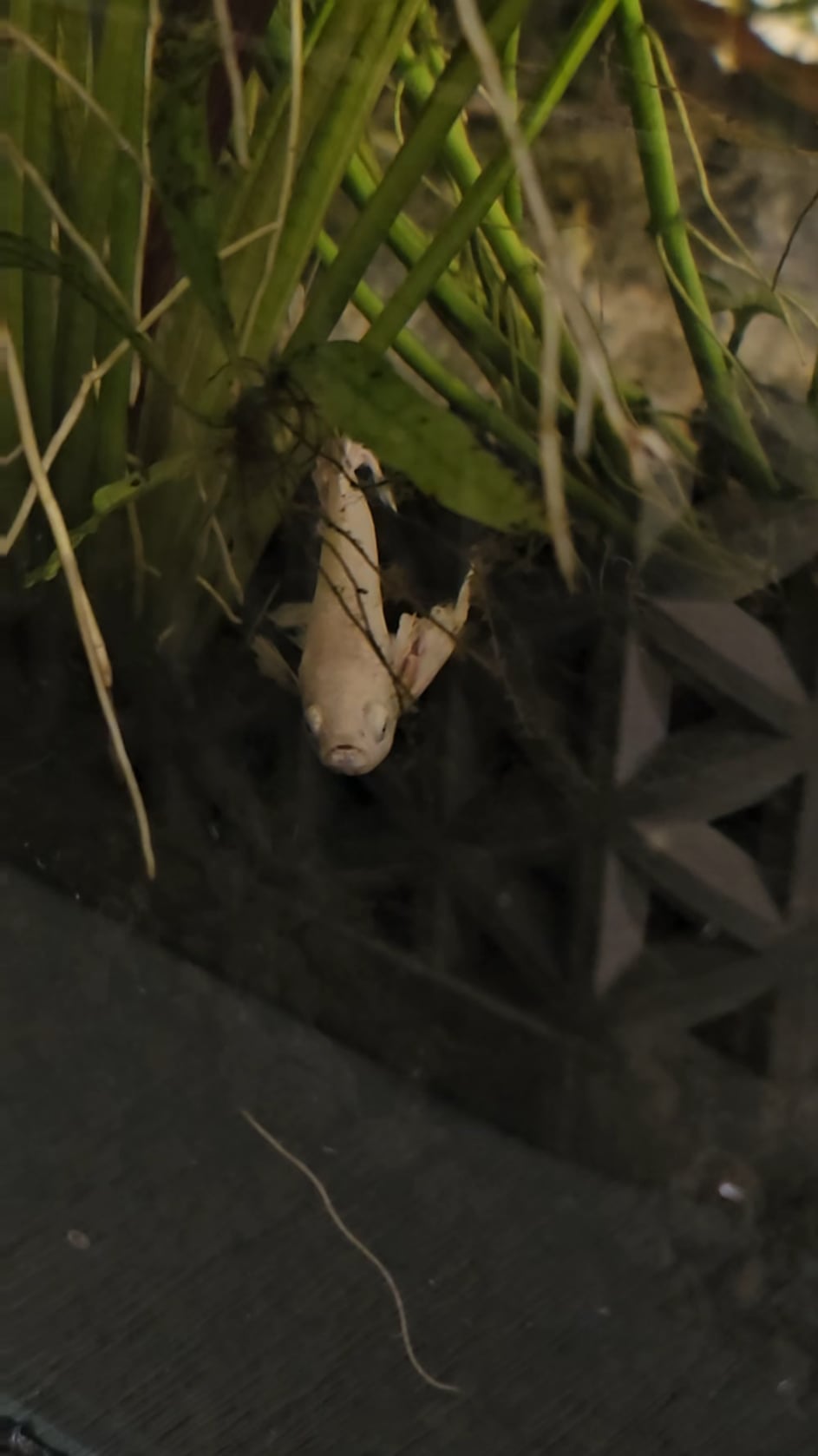 He has more than enough sword leaves and real estate to sleep near the top. But 60% of the time, he sleeps on the substrate.