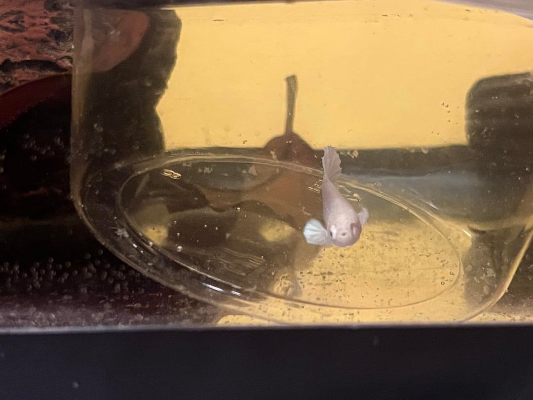 She’s currently in a hospital tank as she’s got a bit of a curved spine and seems to have trouble navigating due to her eye (or lack their of)