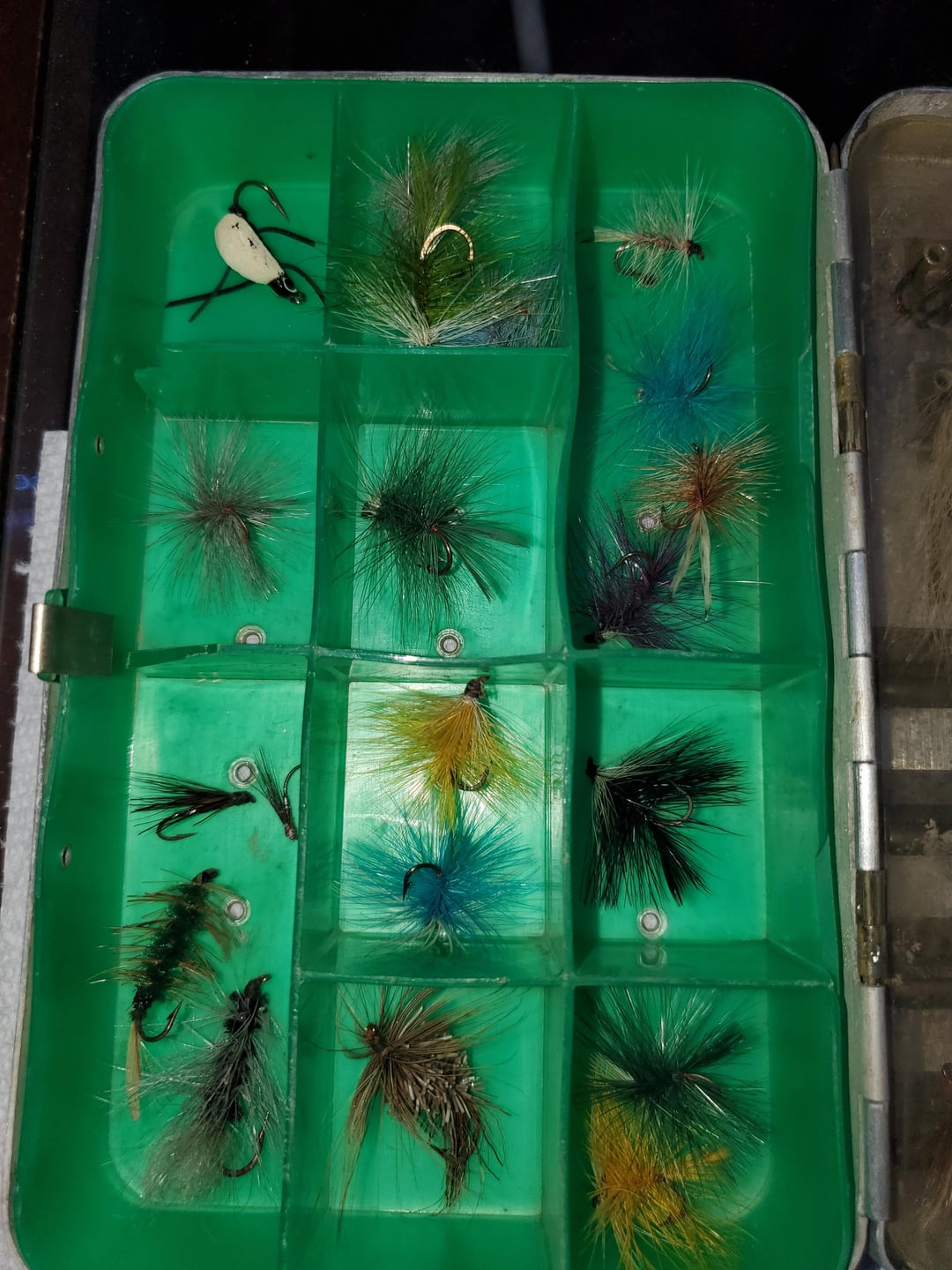 I inherited this case of handmade flies from my grandfather, and I’d like to display them and gift them to my father. I would appreciate any help identifying the types of flies they are. My grandfather was from Newfoundland and primarily fished for salmon. Any help is appreciated.