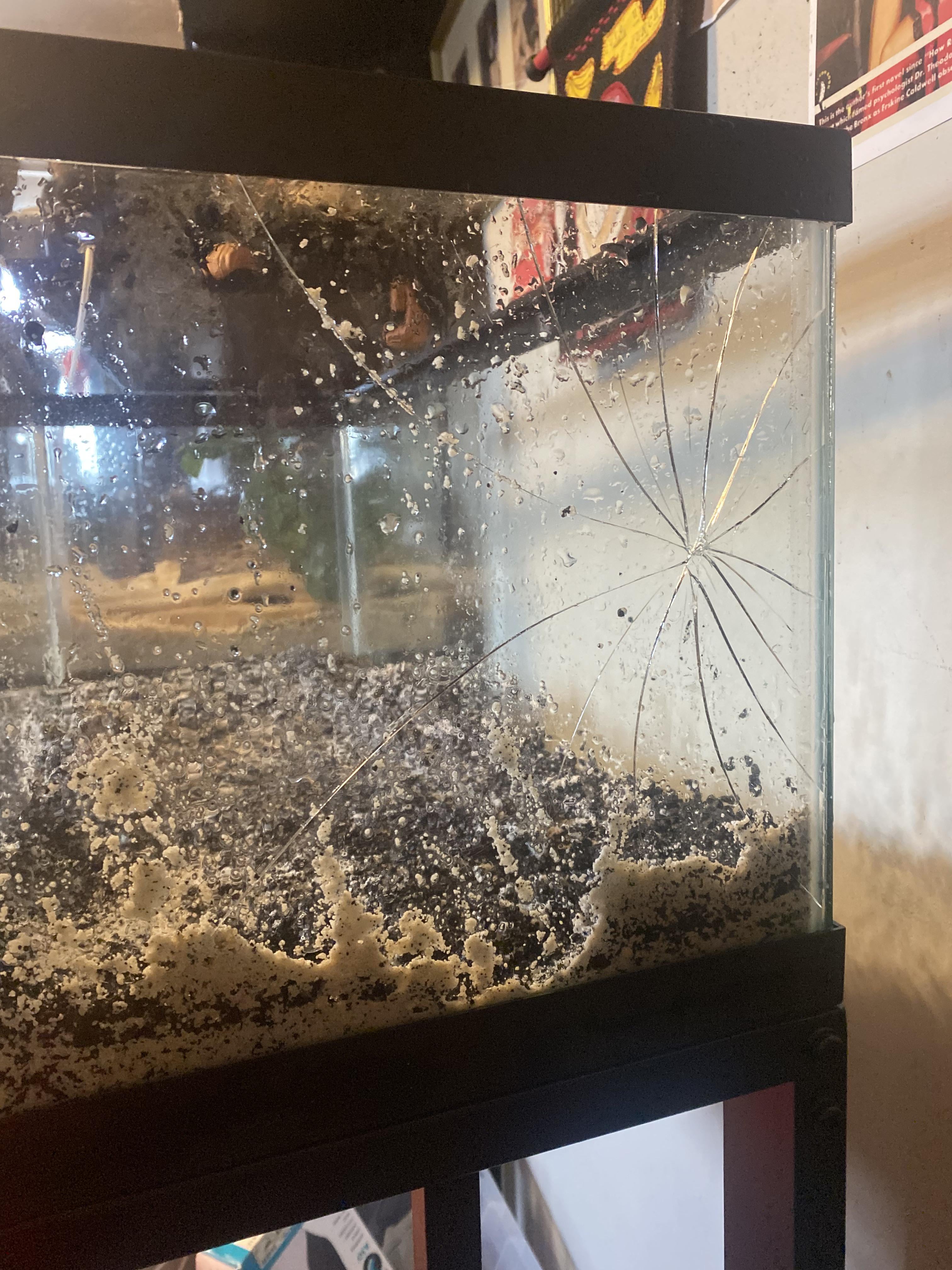 Go get yourself out of the mess of cleaning a broken aquarium… good luck!