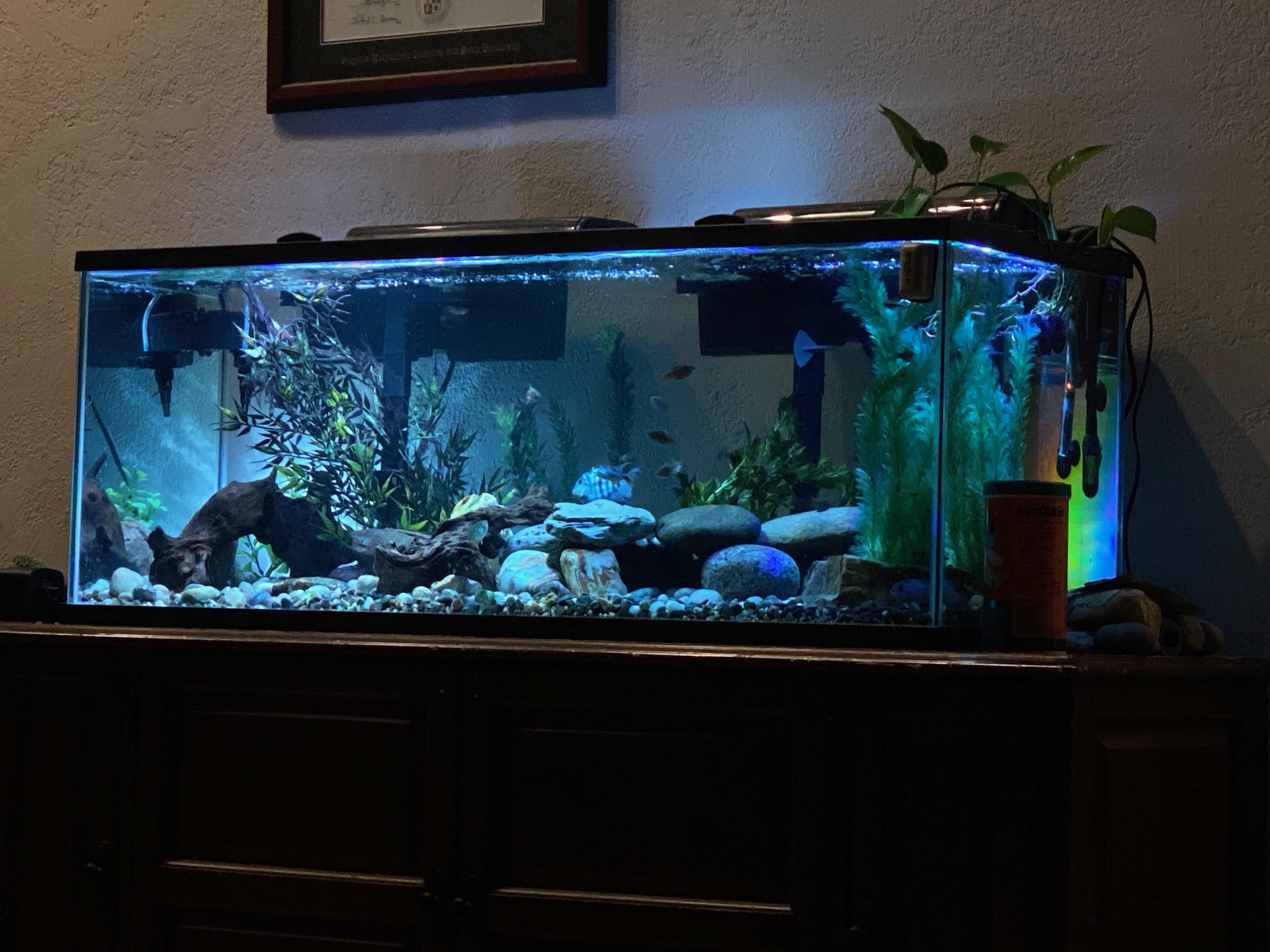 Can’t wait to get back to my family (including my fish friends). Thought I’d share the photo since it looks nice with the back light making a rainbow.