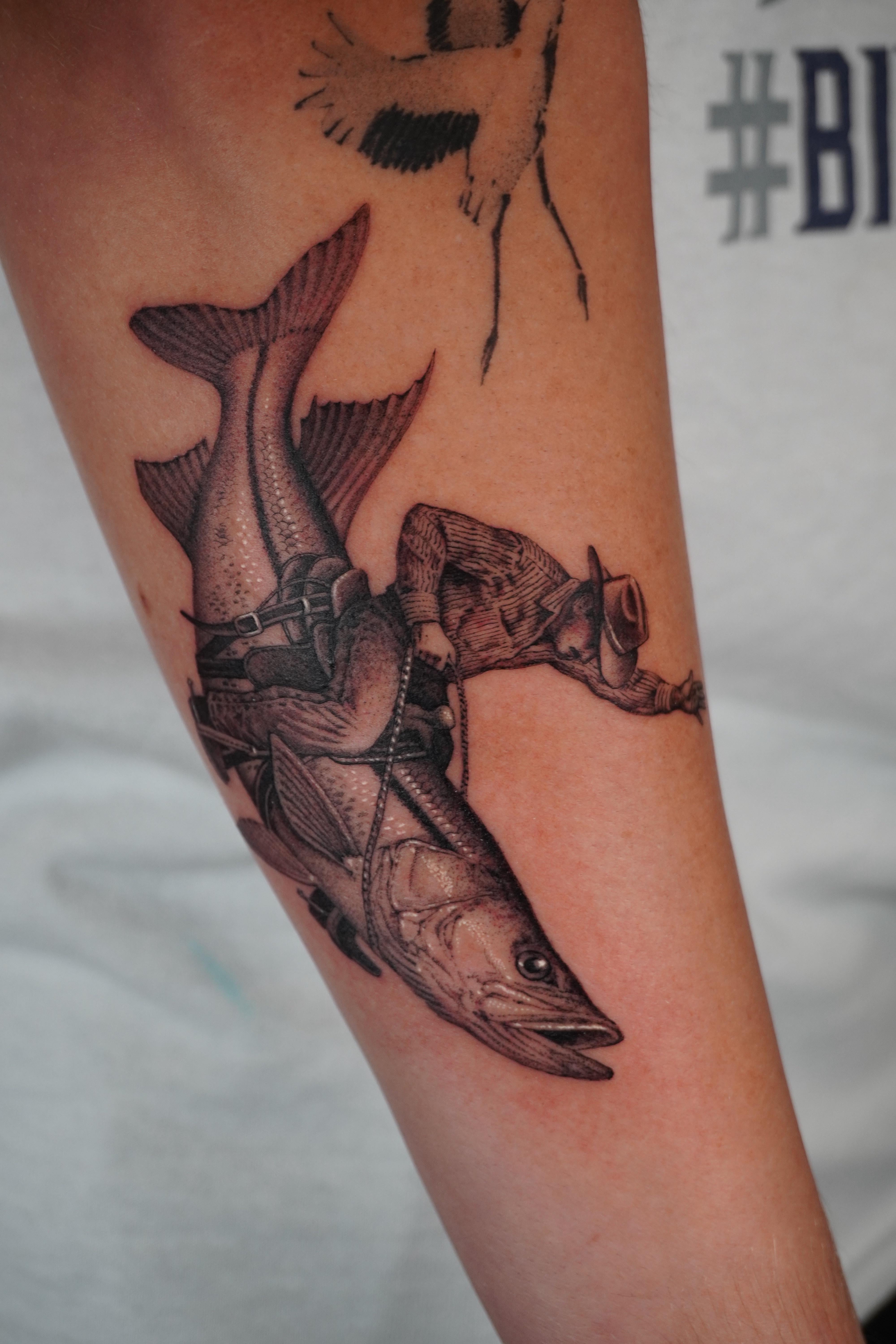 Cowboy Fish rider?!?!?!?!?!Done by @cww__tattoo in St.Augustine FL at CODO Studio Posted by Free-Fix7737