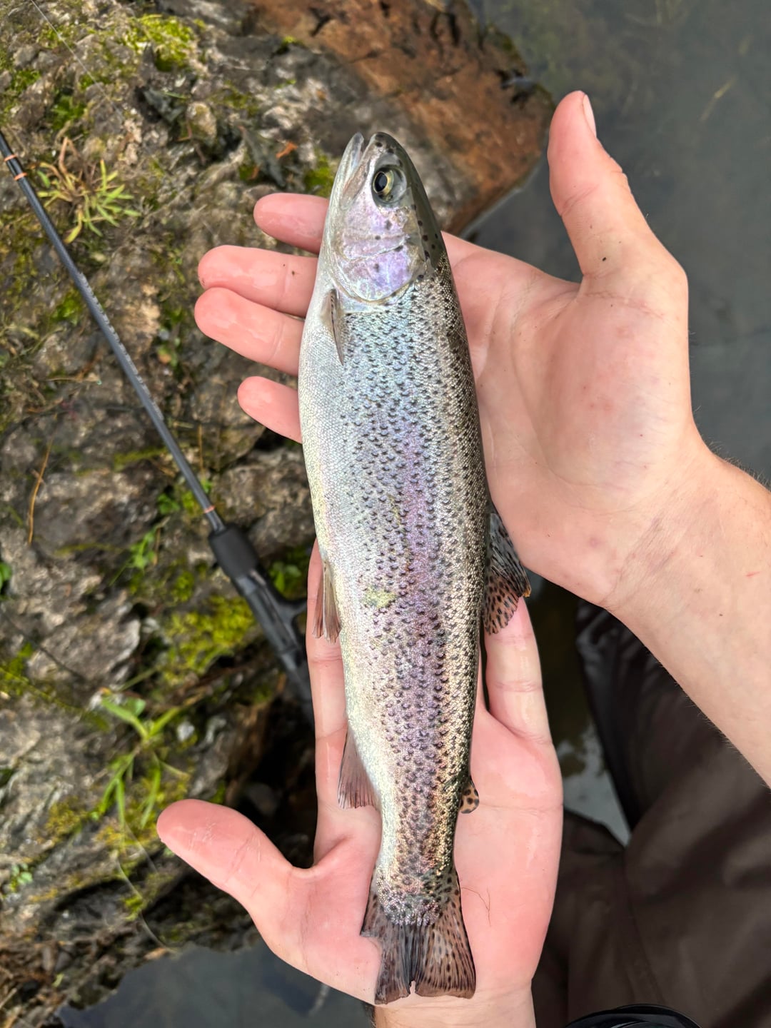 a couple rainbows from today and possibly a steely in the first photo? let me know! caught about 8 bows in an hour today Posted by ayden_vfm