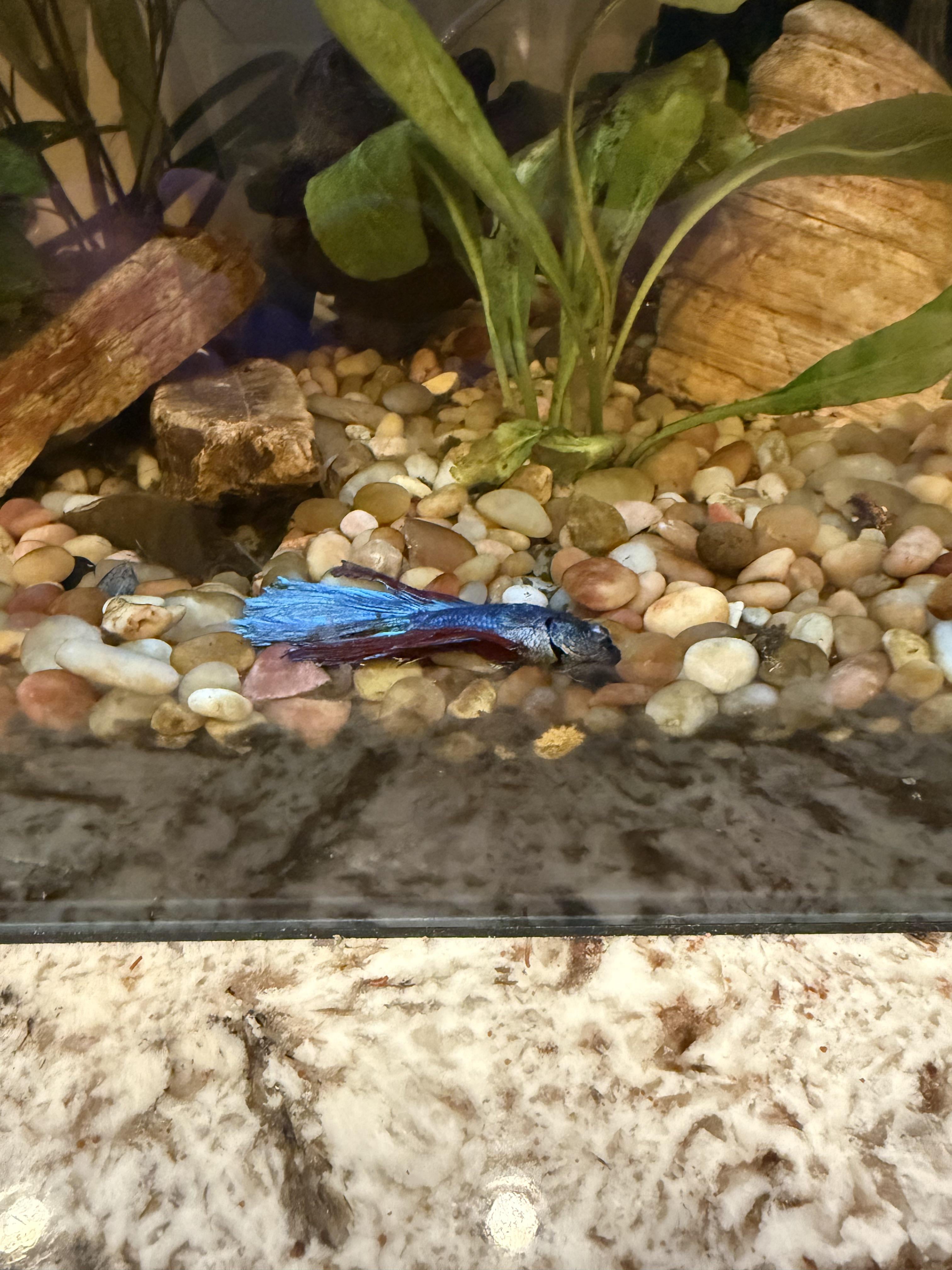 My betta hasn’t been doing great since we got back from vacation. He can swim but a lot of the time I’m finding him at the bottom of his tank or in odd places. Way less active than before and when he leaves his log he kind of sinks to the bottom and will swim back up to his log later on. I just don’t want him suffering. He’s eating pretty normally still.