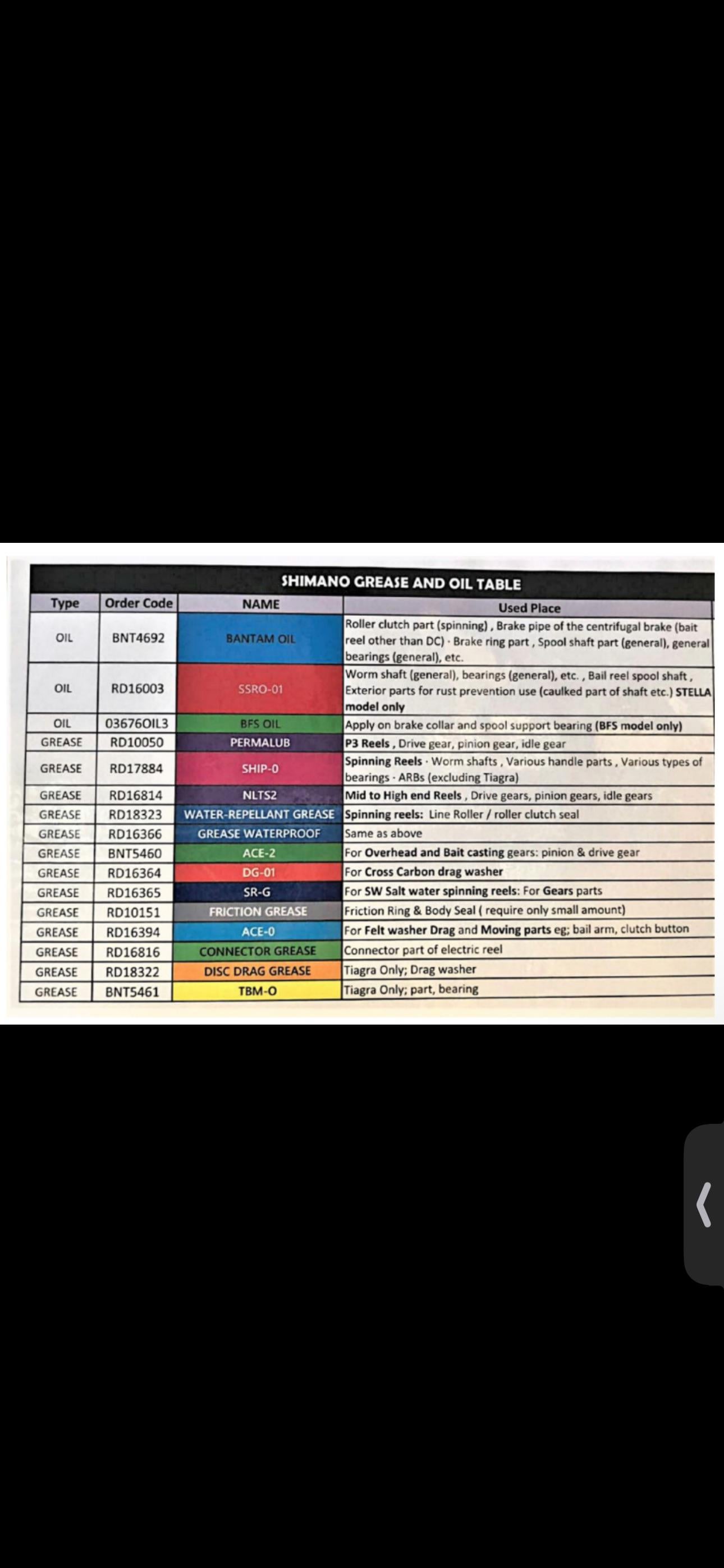 I use one oil (TSI 321) and one grease (super lube). For saltwater reels everything but the spool bearings on a casting reel gets grease. Grease in spool bearings slows them down and decreases casting distance by a lot. Covering everything in grease does mean the handle has a little more resistance but nothing inside the reel corrodes. I’ll take the anti corrosion over being super loose spinning in saltwater reels all day.