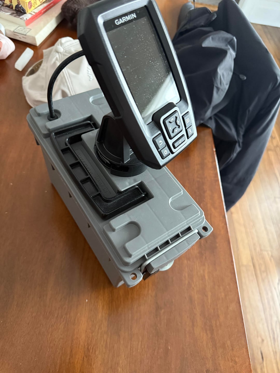 Made this setup last season using a garmin striker 4. Mounted and sealed the screws with silicone. Attached quick connects for the battery, insulated with cut foam and triple layer on the bottom. Small rubber gasket fit for the power cable to go through.