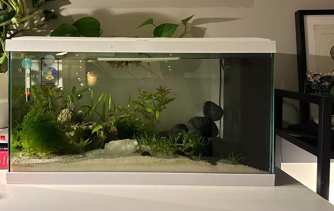 Hi all! I just got my very first betta. He’s a blue rim plakat and I’ve got him in a 15 gal with a school of ember tetras and a few neocaridina. The tank has been going for 6 weeks and fully cycled, parameters looking perfect and the embers seem very happy. I have them at about 78-79°F.