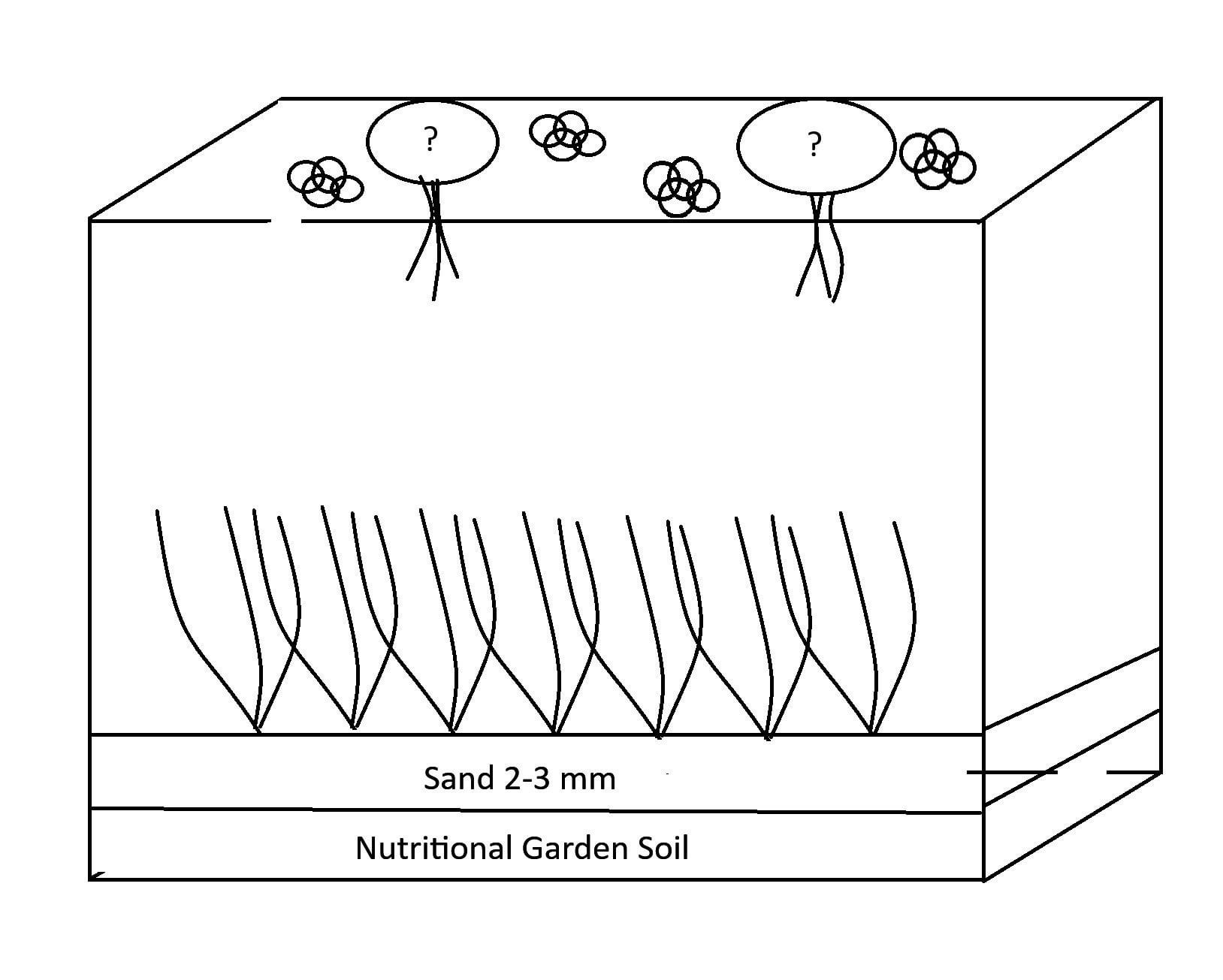 I would definitely make a deeper sand cap. I know you don’t want to do a filter but I’d put a sponge filter tucked in a corner and covered by plants for some water movement and aeration. I’ve done “modified Walstead” tanks like this for years.