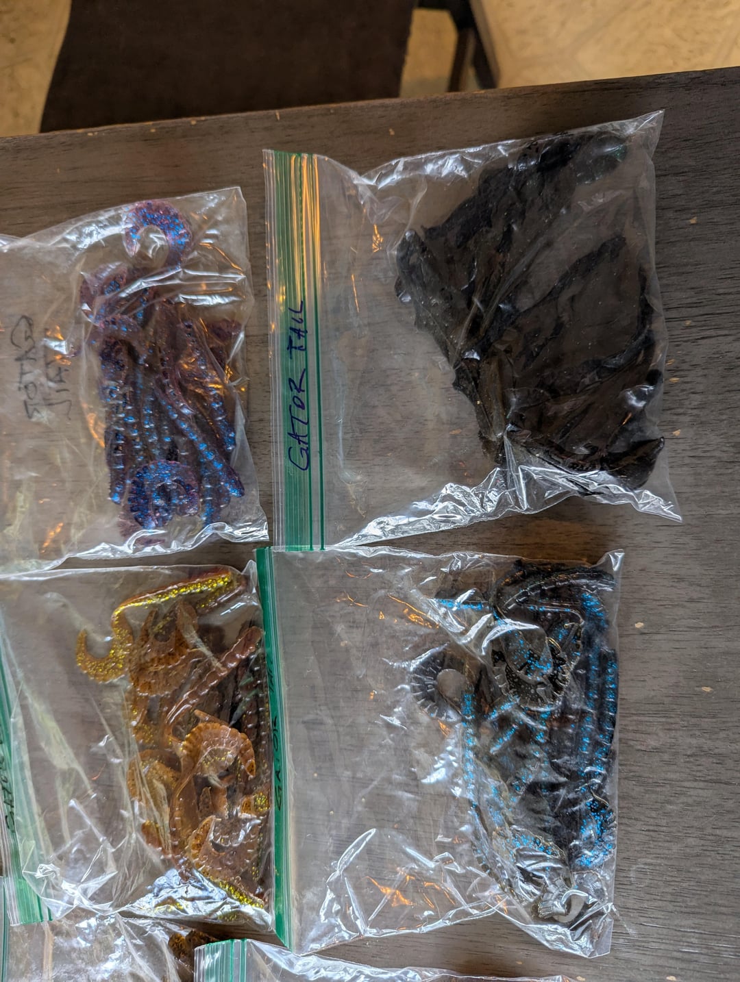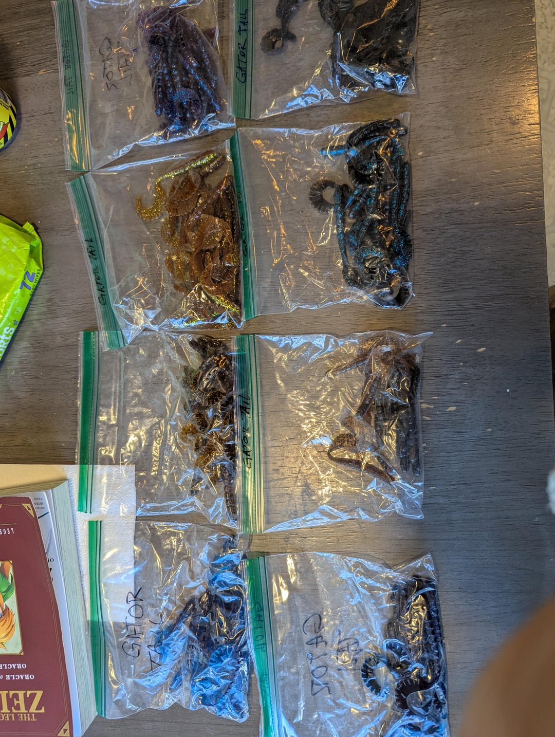I ended up with 48 Ziploc bags of lures total , along with the hard baits and some random other stuff loose in the boxes.