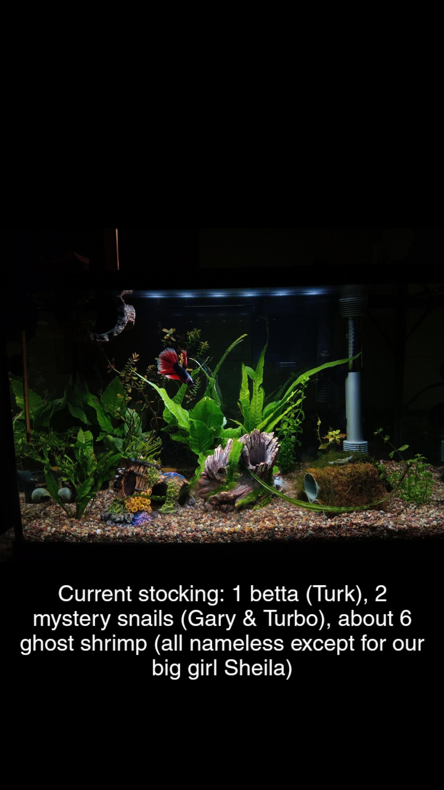 Also, I know I need more ghost shrimp, also working on that. I have found my betta eating one of them before. He doesn’t bother them often but isn’t opposed to snatching one or two. Once they reach a certain size he stops paying much attention to them.