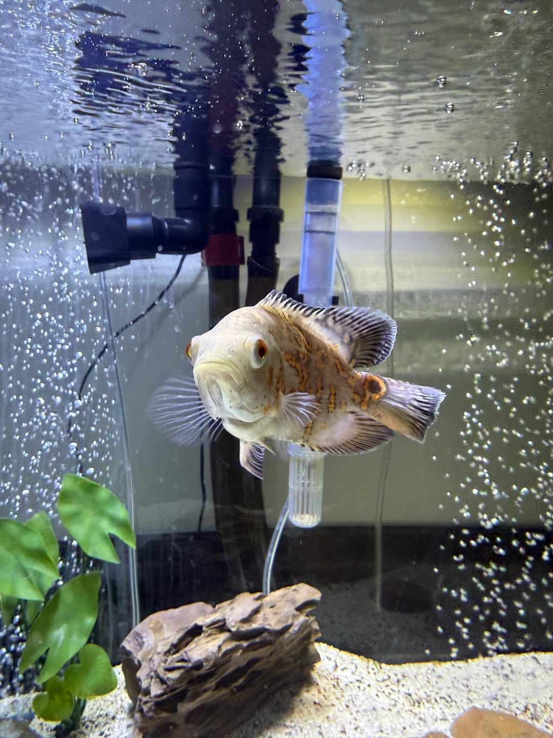 Uhhh… she got stressed out and ate the bichir she grew up with .. but she’s officially back in her 75 gallon. No more stress! (And one less roommate!) Posted by 6crotum