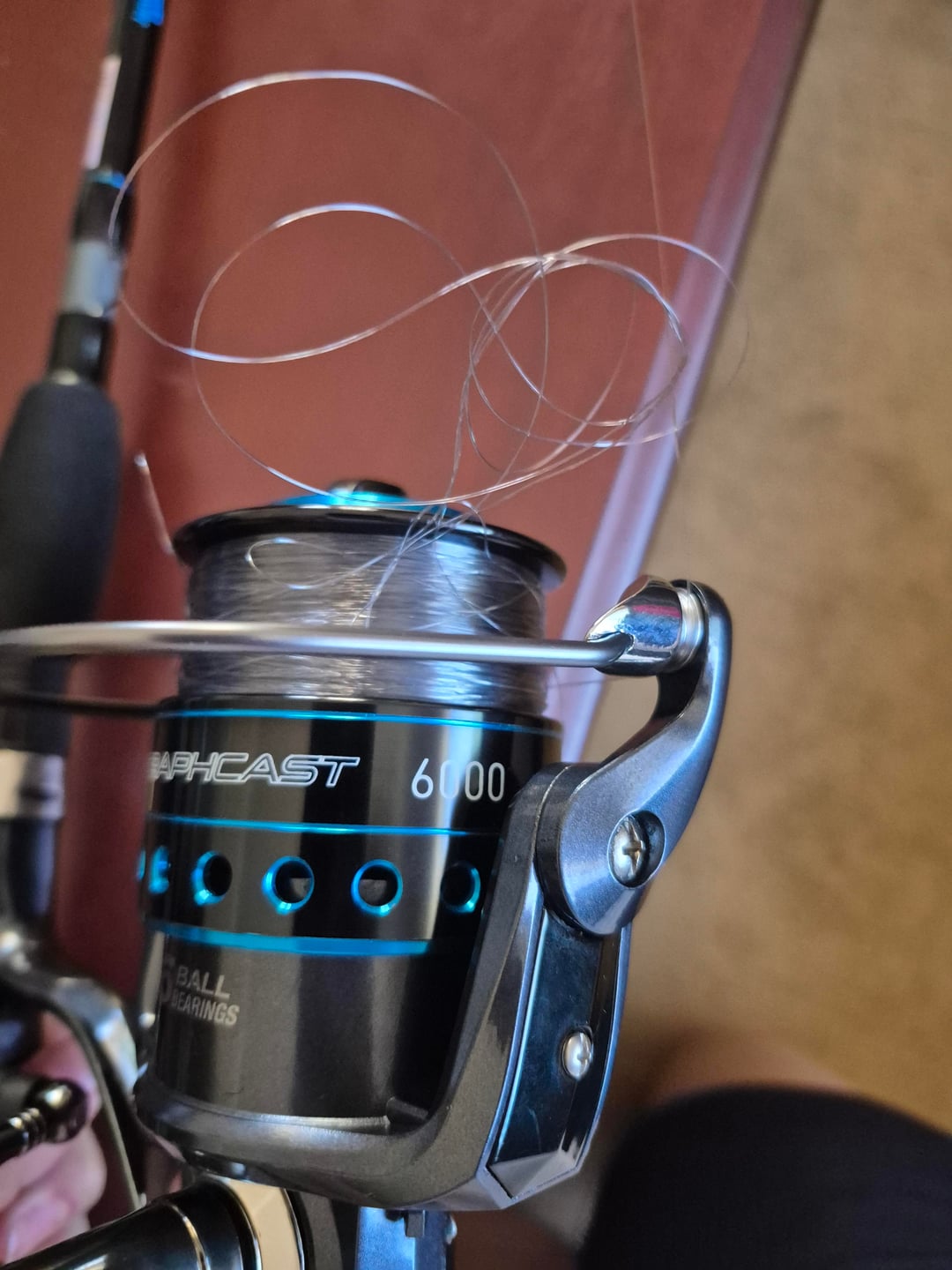 Hello, it's my first ever time fishing and I am having trouble with the line. Whenever I open the bail arm to cast, a lot of line comes off the spool and it is really curly. When I try to reel back the line that came off, it gets all tangled as shown in the pictures.