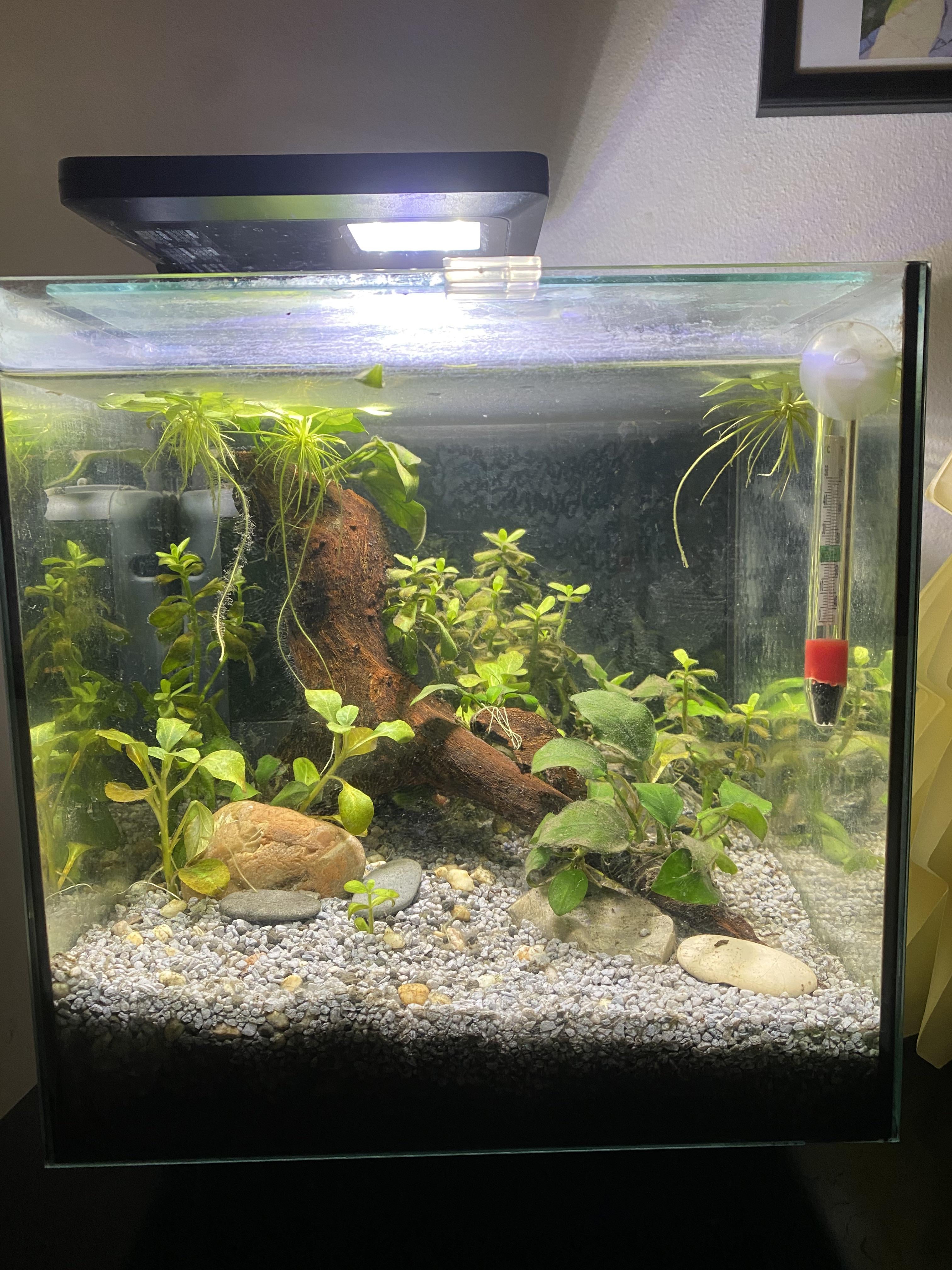 I got this 4gal tank set up and ready to be stocked. My original plan is to add neocaridina shrimp to this tank but I saw this beutiful betta at my local fish store, wich I hope to add into my 14gal tank im setting up rn. The problem is that the 14gal still needs some more stuff before I can set it up to cycle and i fear that when the tank is cycled. That the betta id like to get would already be bought by someone else. Would it be alr to add that betta to this tank wich is fully cycled for Abt a month before i add it to my 14gal.