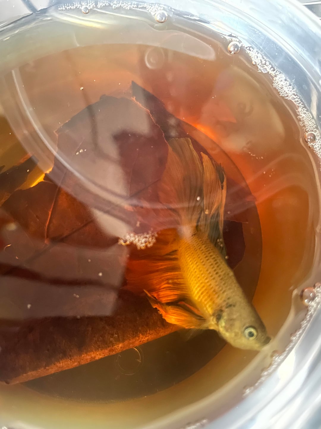 Ive noticed 3 days ago that he swims differently and yesterday i saw him sitting still on the bottom so i moved him in this container and put tannin but he still died 😩😭💔