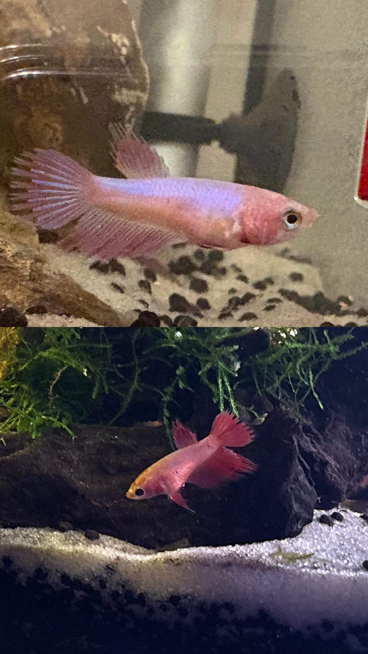 Both are honestly low quality photos… full tank shots zoomed in, as one does. This is my female crowntail just over three weeks after I purchased her. No name yet… she was in horrible condition and I was convinced she was gonna die so I didn’t want to name her and get attached. I have no idea where to even start thinking about names.