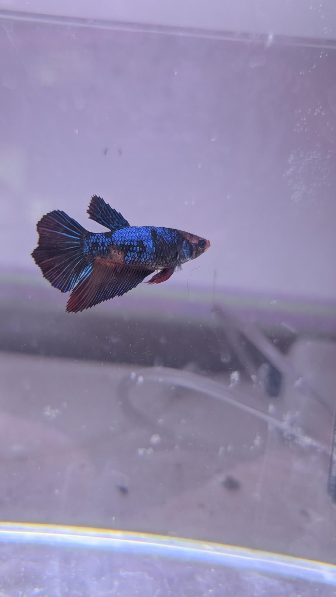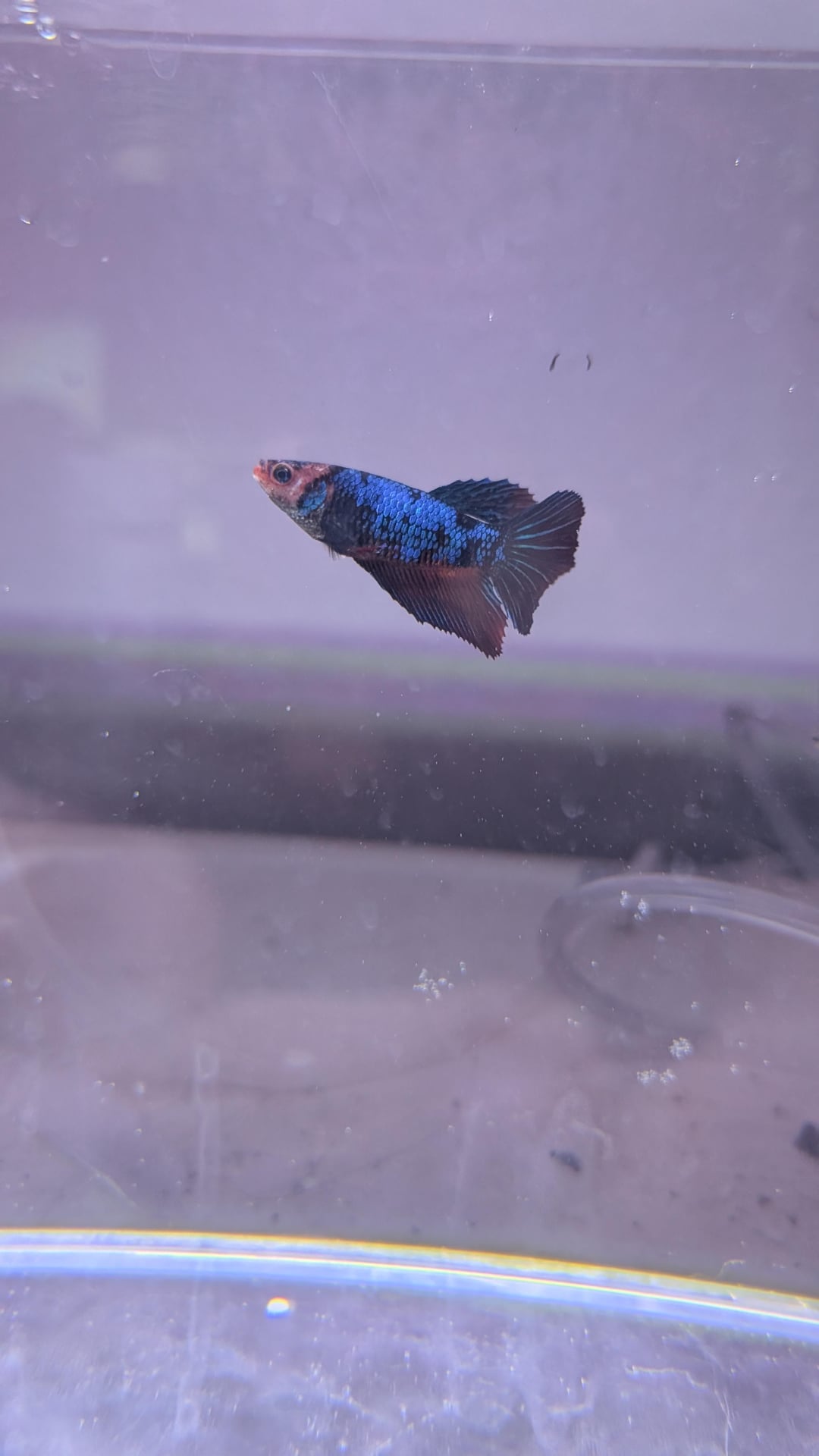 This is my female I got about half a year ago, she seems to be doing fine except for the obvious patches. First I thought she was changing colors but it looked more and more like skin. (((THIS IS NOT HER NORMAL TANK THIS IS FOR TREATMENT!!!)))