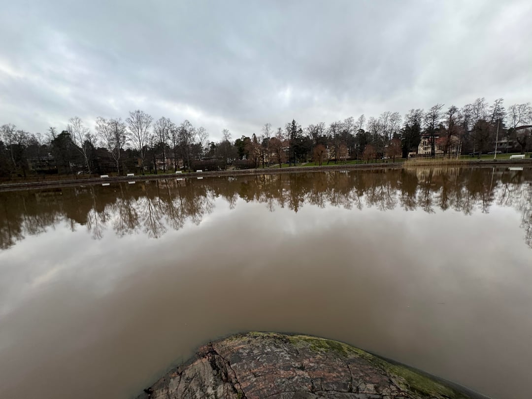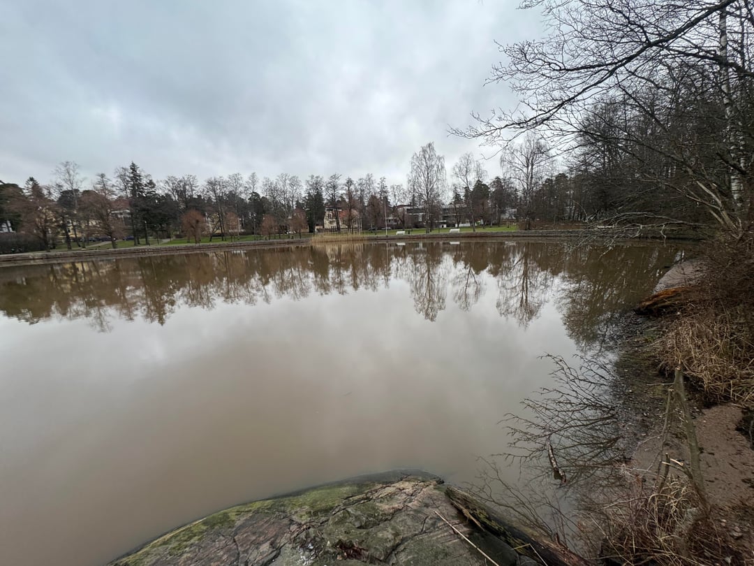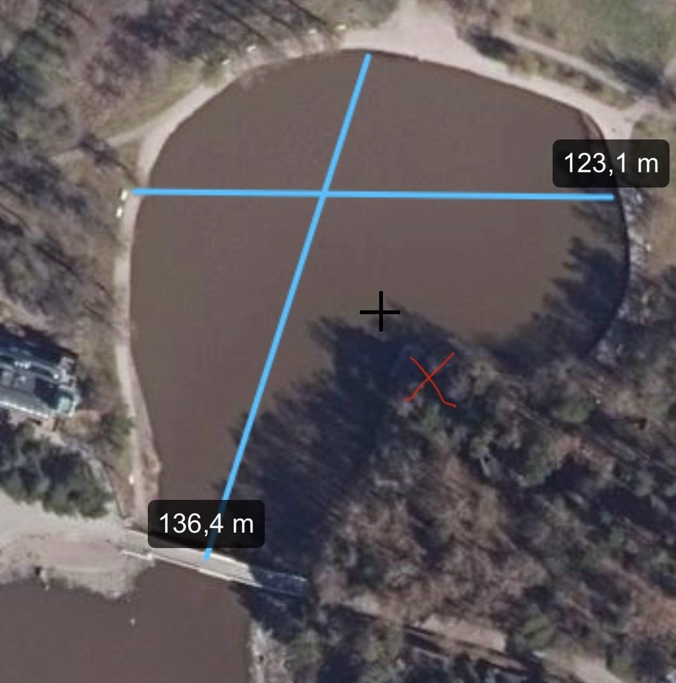 Spot details: Small bay, roughly 390 x 425 feet (about 120 x 130 m). Saltwater, water temperature around 39°F (4°C). Estimated depth 5–10 feet (1.5–3 m). Water is very dirty / stained brown, low visibility. Heavy fishing pressure. Fish seem extremely inactive / lethargic.