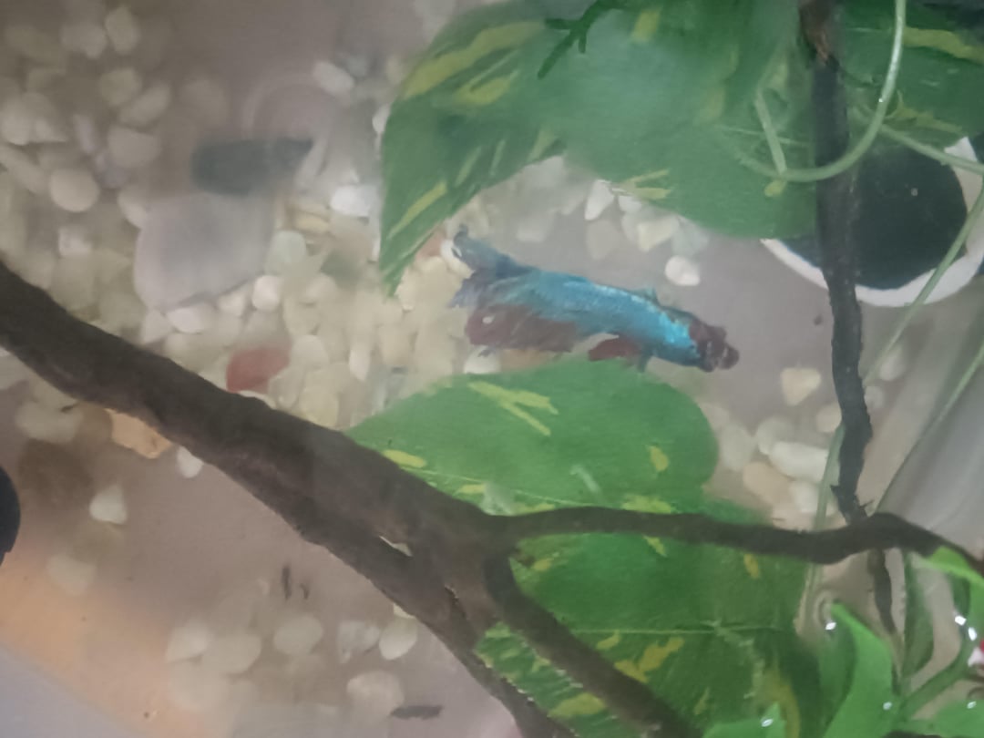 Please don't judge me , I arranged everything in an emergency because his previous owner was going to take him to a cold place where temperature would go in minus, without heater.He lived in a bowl her whole life ,so he had extreme fin rot.
