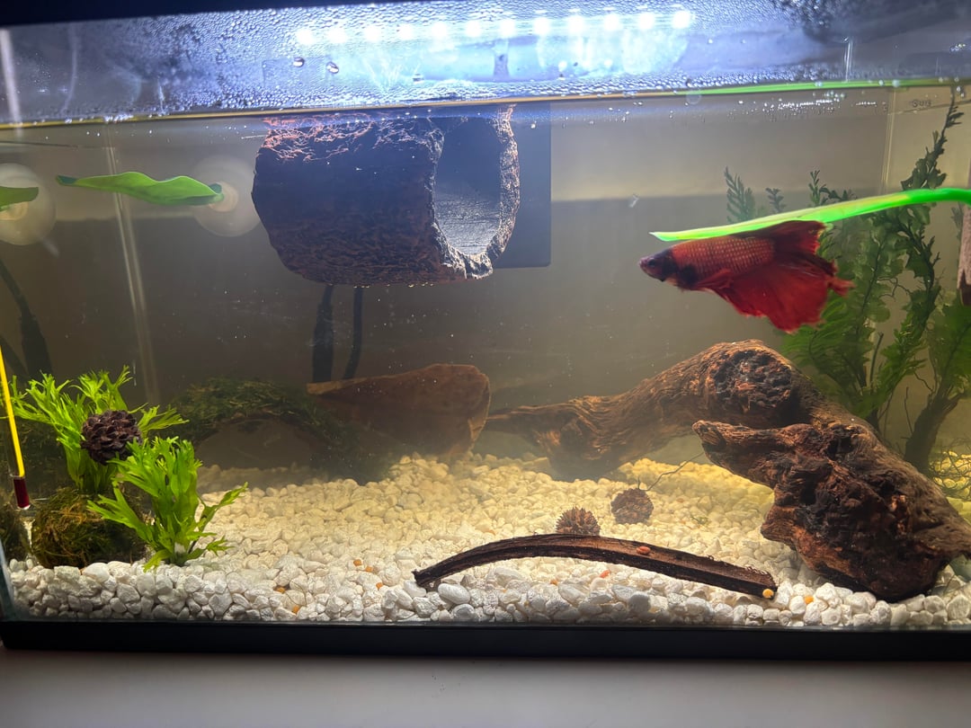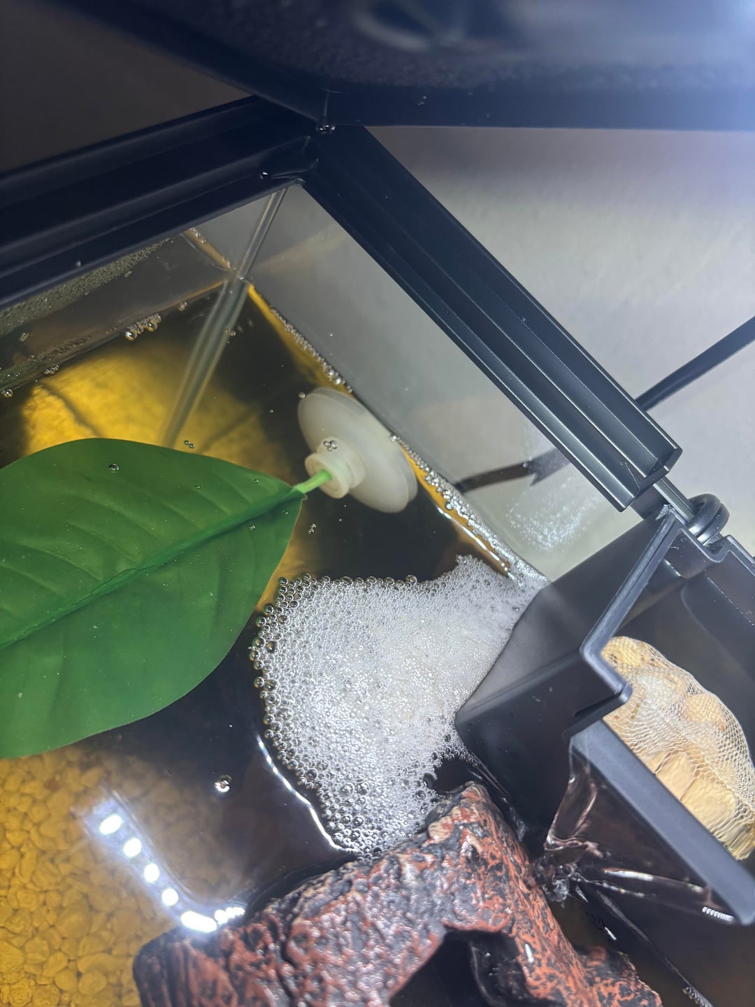 My boy has been acting a little more depressed lately so I did a full tank upgrade , natural plants , hide outs , floating logs and I got him a bigger tank (10g ). I cycled the tank first and it’s been about a week that he’s been in it . Today I saw this , it’s similar to what I saw in his old tank. All around he’s a bit of a shy boy compared to my other beta who’s just a super social guy but I’m not sure if it means he’s not happy. He still comes out , he’s not pineconing or loosing any weight and his color is good , I’ve had him for about5 months and he’s picked up weight since I got him and still likes to eat but I don’t really have experience with bubble nests . Any pointers would be great ☺️