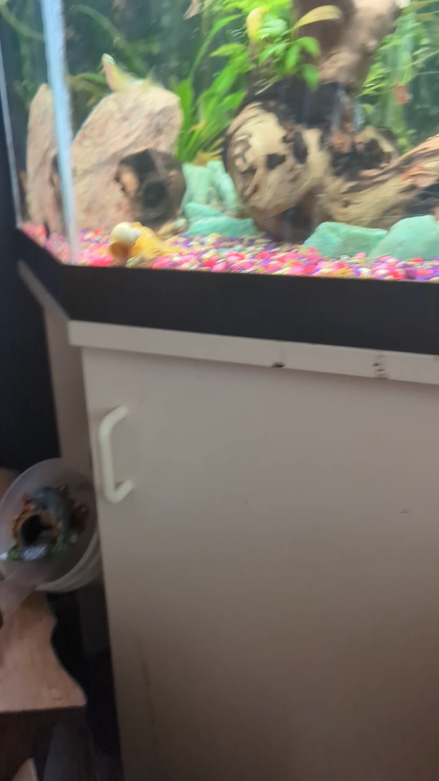 Is he aggressive and territorial towards the corydoras? He really doesnt seem to like that snail being around.