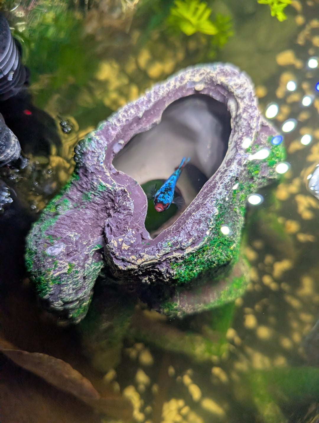 Only things I am thinking of adding are something on top of the hole in his stump, and maybe a nerite snail.