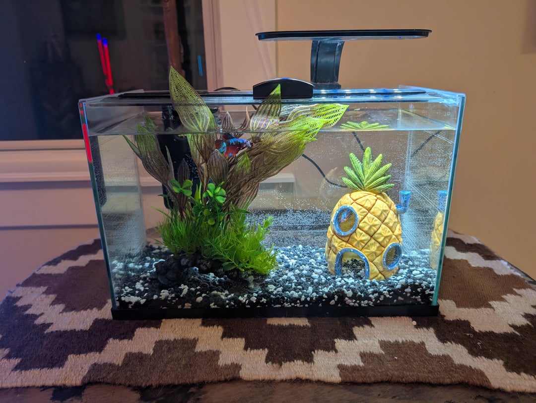 Much improved, nice work! Someone else mentioned a lid and that’s a good idea if you don’t have one, bettas are jumpers