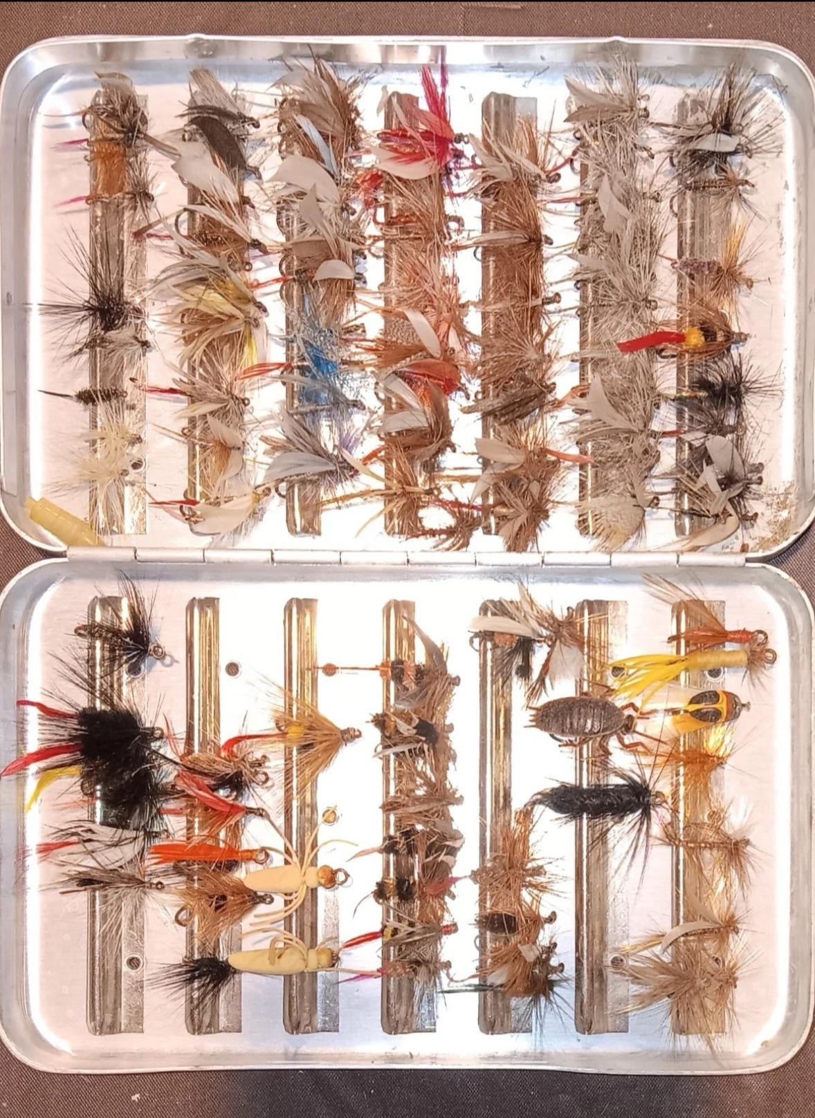 Could I get some help with identifying the flies on the top half? Just got this box off eBay for $40 Posted by Old-Log-207