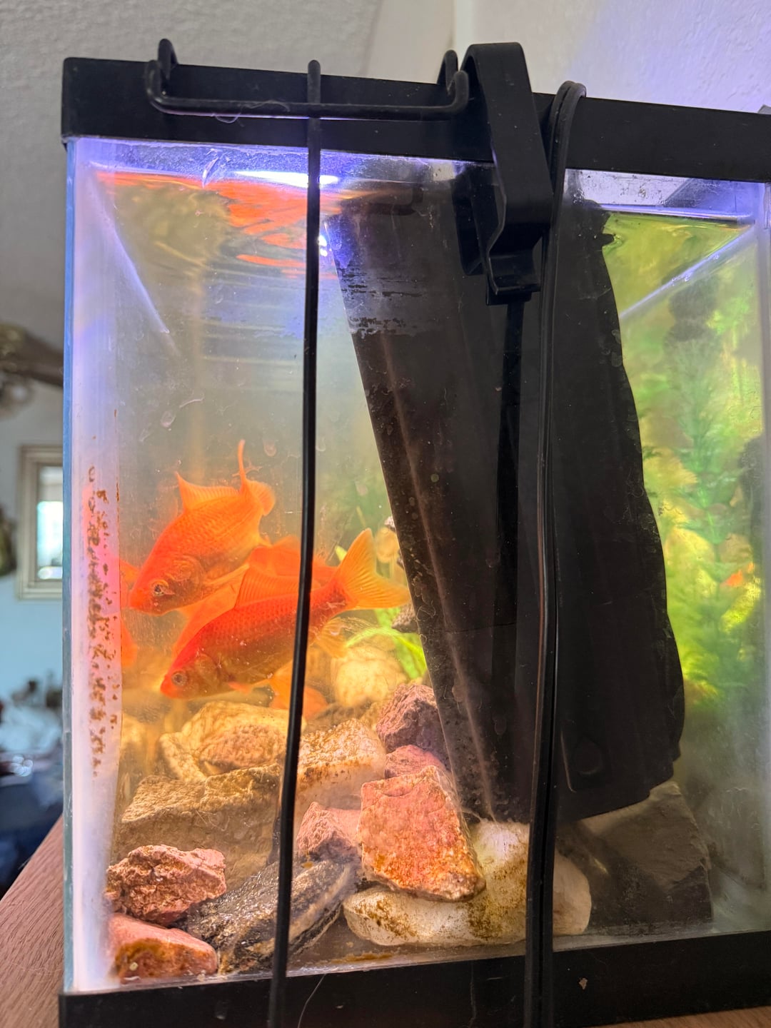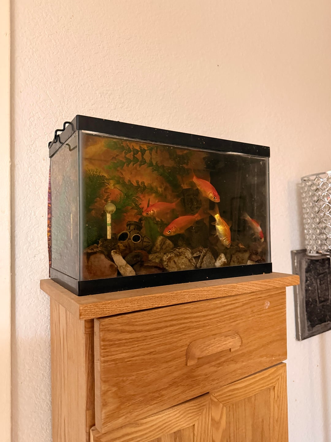 I’m pet-sitting for my family while they’re out of town. This is a relative’s fish tank. I don’t know the first thing about fish, but this looks to be about 5.5 gallons and inhumane, right? I’m absolutely horrified and cannot stop thinking about it. The tank looks even smaller in person, it’s roughly 12 inches wide.