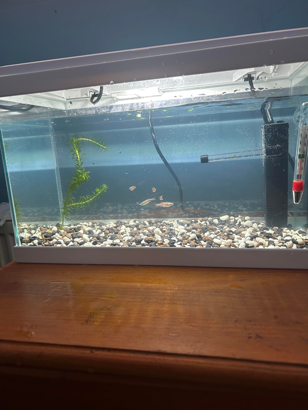 It’s my first tank, made some mistakes costing me two white clouds but now iv a self sustaining population of shrimp 3 hyper aggressive white clouds that hunt them all day which is cool to watch.