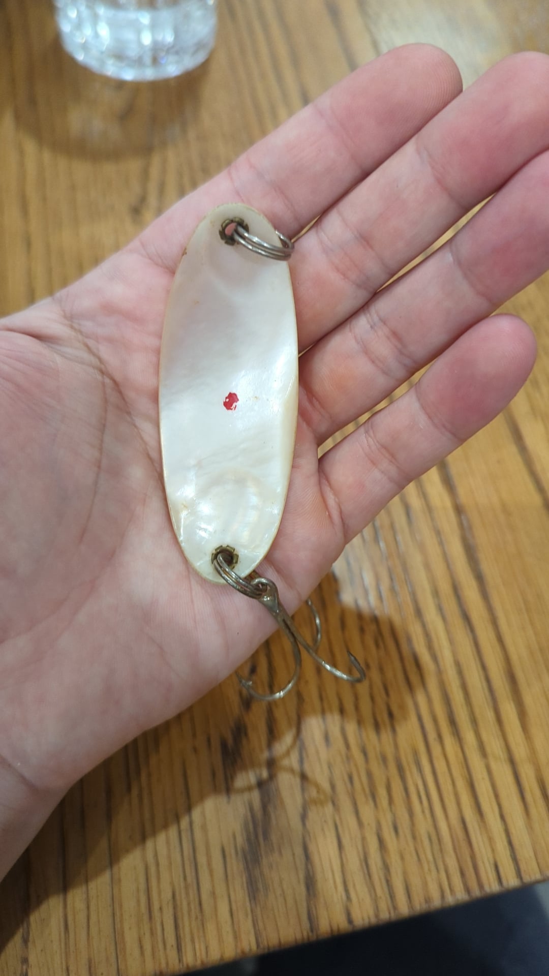 PM_NICE_TOES-notmen on December 24, 2025 11:04 pm From my grandfather’s old tackle box. There’s a bunch of antiques and trying to win an argument on what this lure is made of. Probably going to frame the antiques to hang up