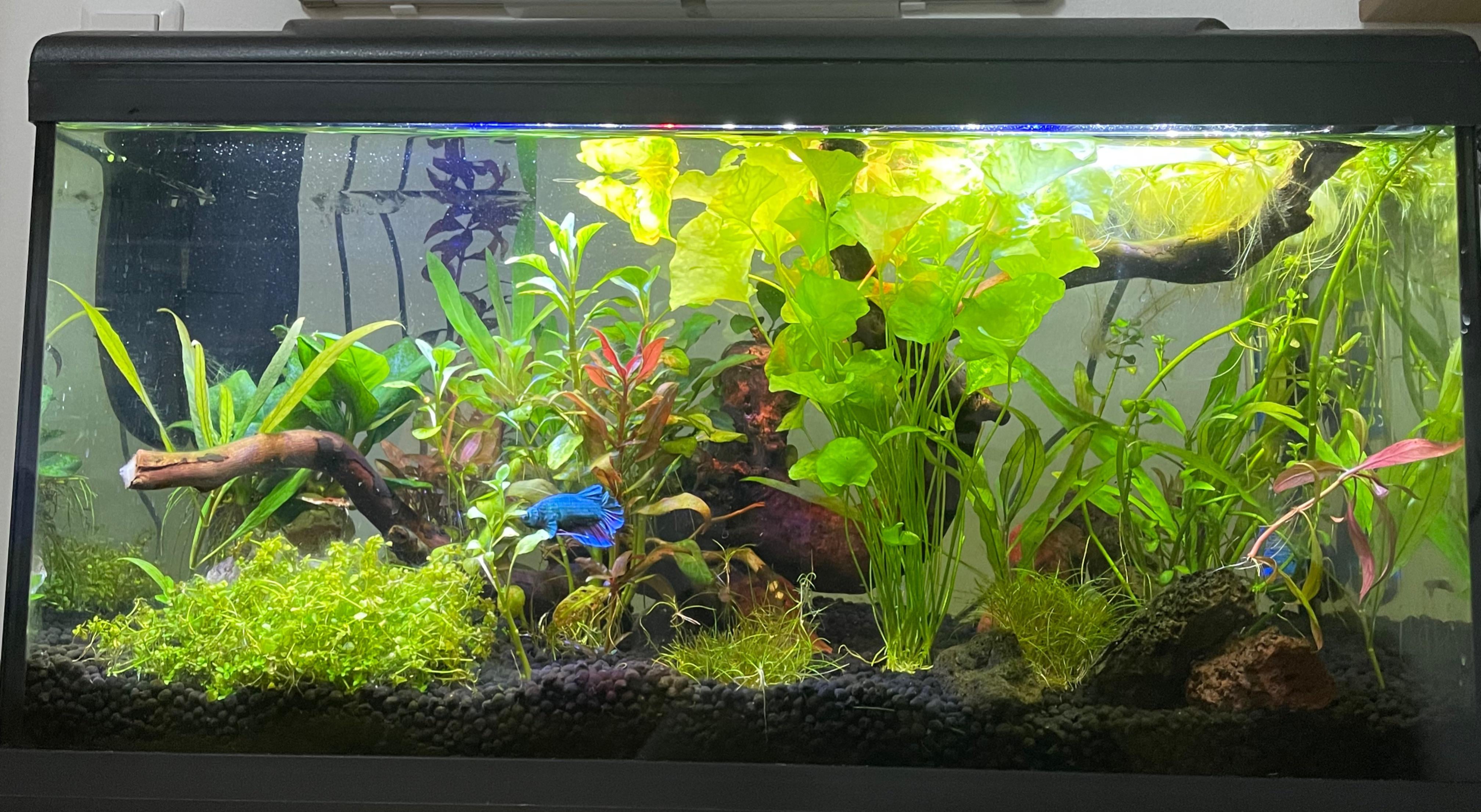 oh my god your tank is so beautiful, do you have any recs or advice for how you accomplished this? all my plants die or get eaten, and it’s always so yellow it feels like 😭😭
