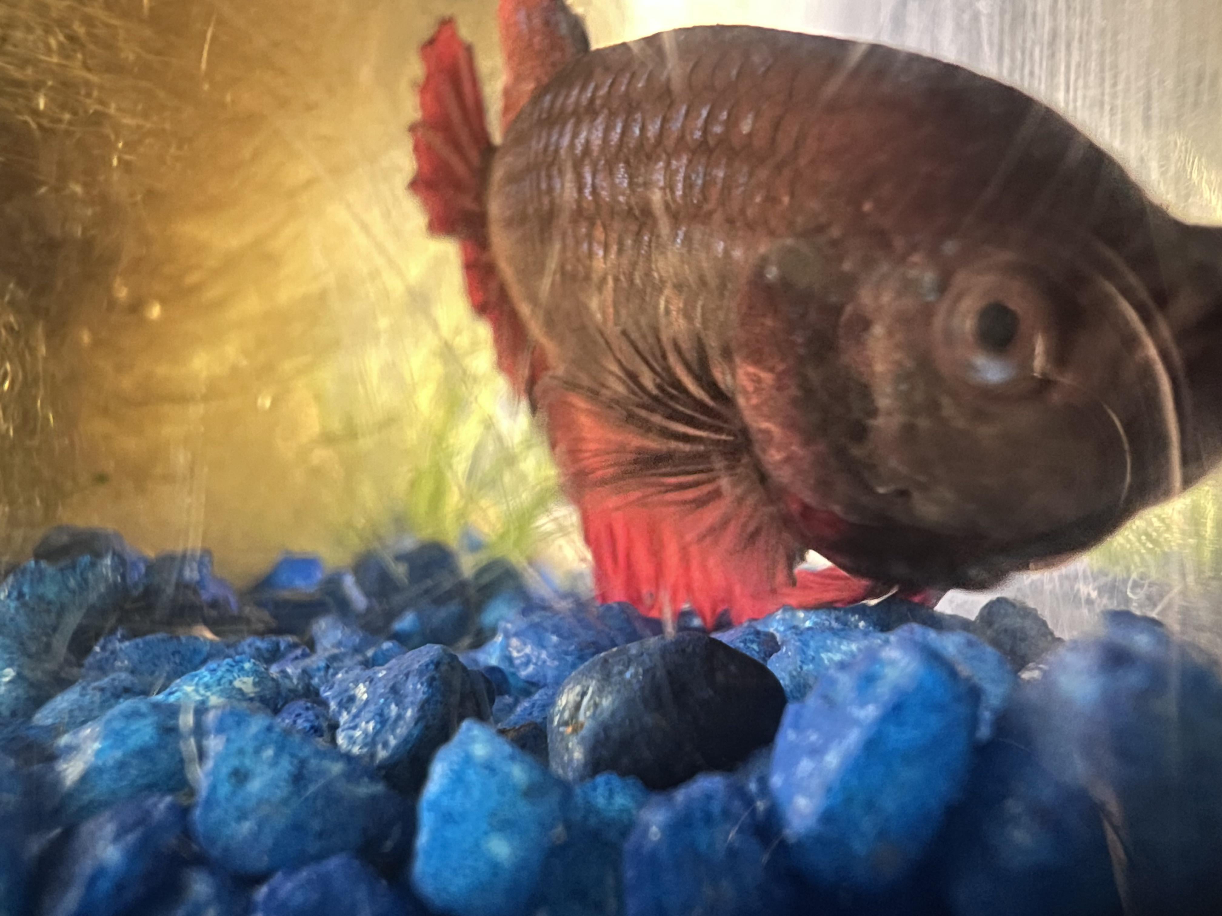So I currently have my pretty girl in a 5 gallon tank with a little snail but idk 🤷‍♀️ I don’t think she’s happy in there… she looks a bit dull in color or maybe that’s how she’s always been.