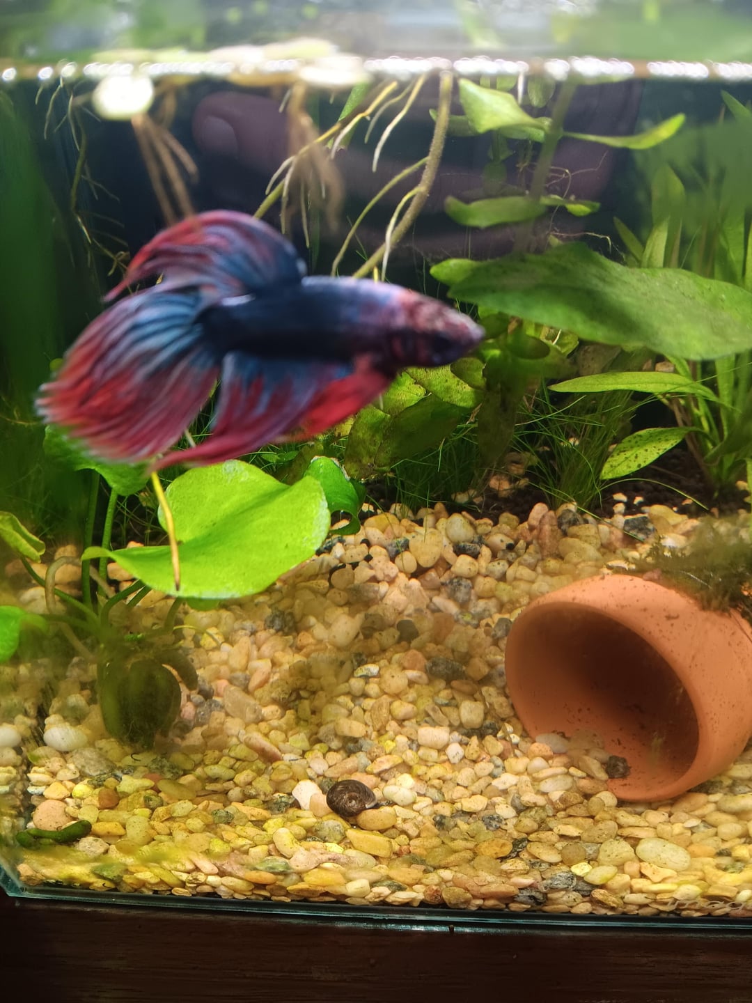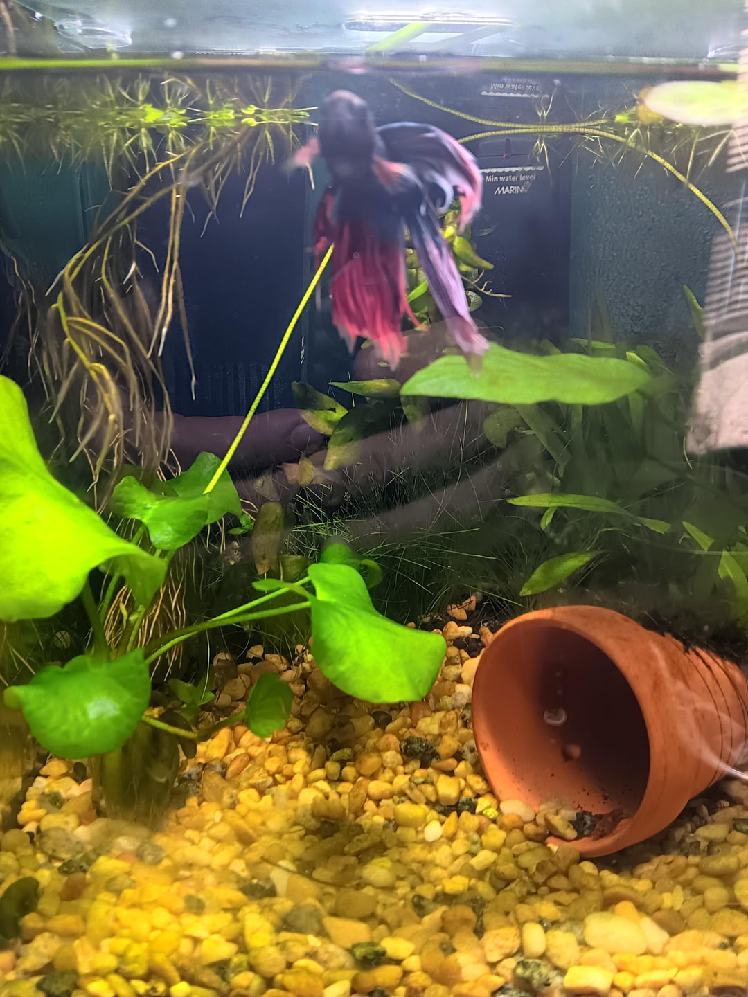 So about 6 months ago my wife and I bought a betta. I hadn't had one since I was a kid and I remember people always kept them in tiny little bowls and 1 gallon betta tanks. Our betta was a baby boy veiltail. We got him a 3.5 gallon cube and planted it pretty good. He seemed very happy. He grew up, got big. Even began making bubble nests. Well we took some flak here on reddit saying his aquarium was too small. So we went and got a 5.5 gallon for him, planted and cycled it. Then we acclimated him and made it his new home. However we kept the 3.5 gallon up and running as it had a few shrimp in it. After about 3 weeks. We came to the conclusion that we didn't think our boy was happy in his new aquarium. He started being lazy, laying around on the bottom a lot​, didn't react to feeding time as he usually does, and hadn't made a single bubble next. So after the 4th week we swapped him back to his 3.5 gallon, where he's now completely back to normal. Very active, always swims to the front when he sees us, and is making his bubble nest again.
