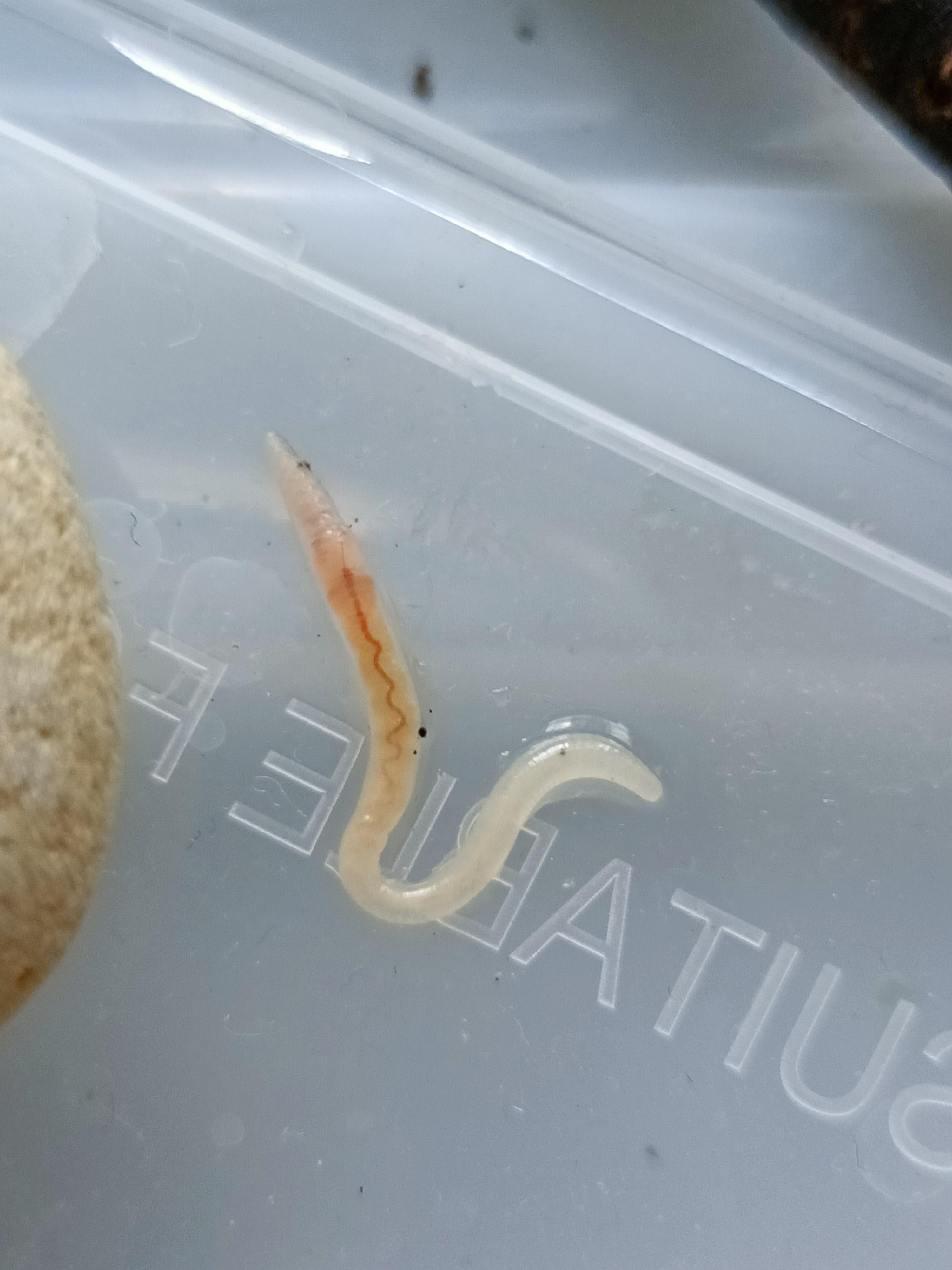 It honestly looks like a white earthworm, you can see what looks like a head end and clitellum with the vein coming down the body from it