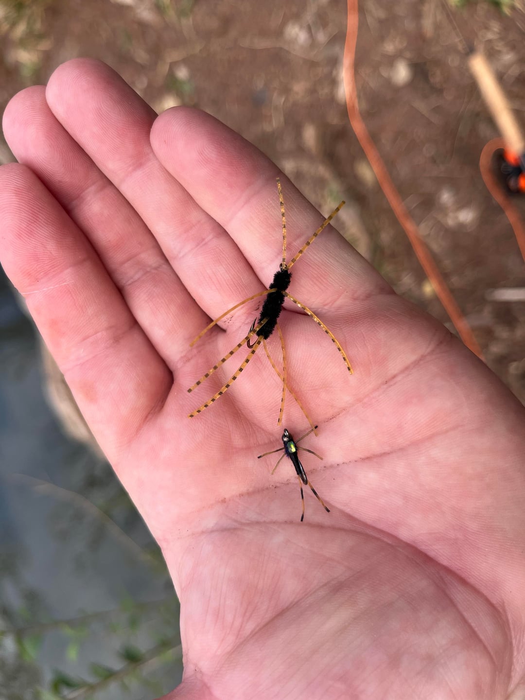 The larger one is a Pats Rubber Legs. I don’t remember what the guy said the name of the smaller one is. Can anyone help with ID plz?
