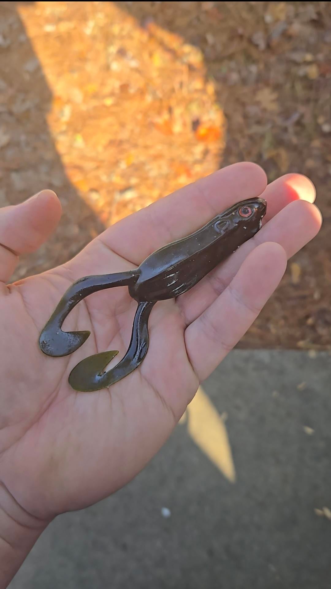 Called an Air Frog. Made by Dimiki or Diamiki or something like that. Never used one, but always wanted to. It’s called an Air Frog because there are hollow air spaces in the plastic to help it float. Obviously it can also be a craw as well. Good find, where did you get it???