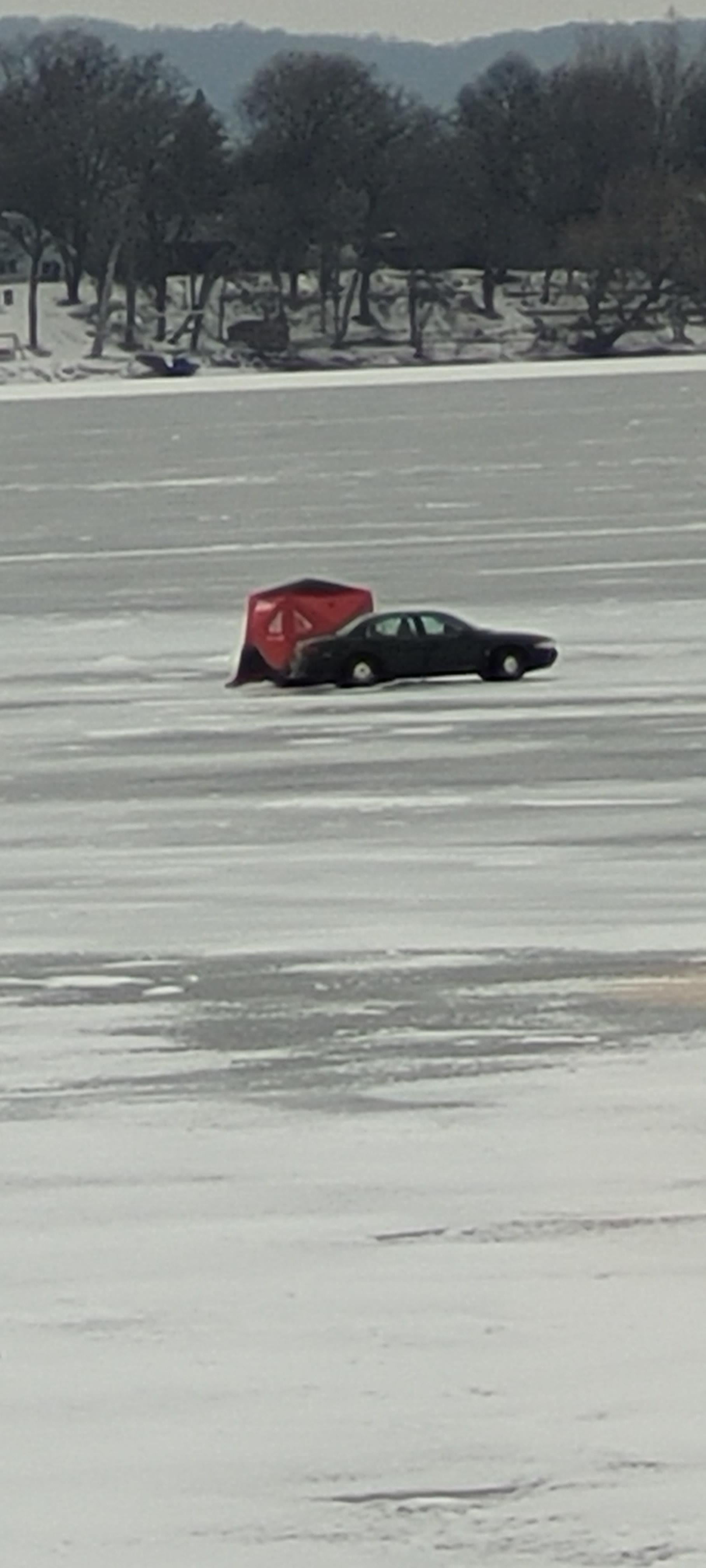 Woke up to this guy cutting holes with his gas auger at about 5am today…. didn't realize he had his car on the ice… 9.5" and has been above freezing the last few days. What the hell? Posted by not_your_step-father