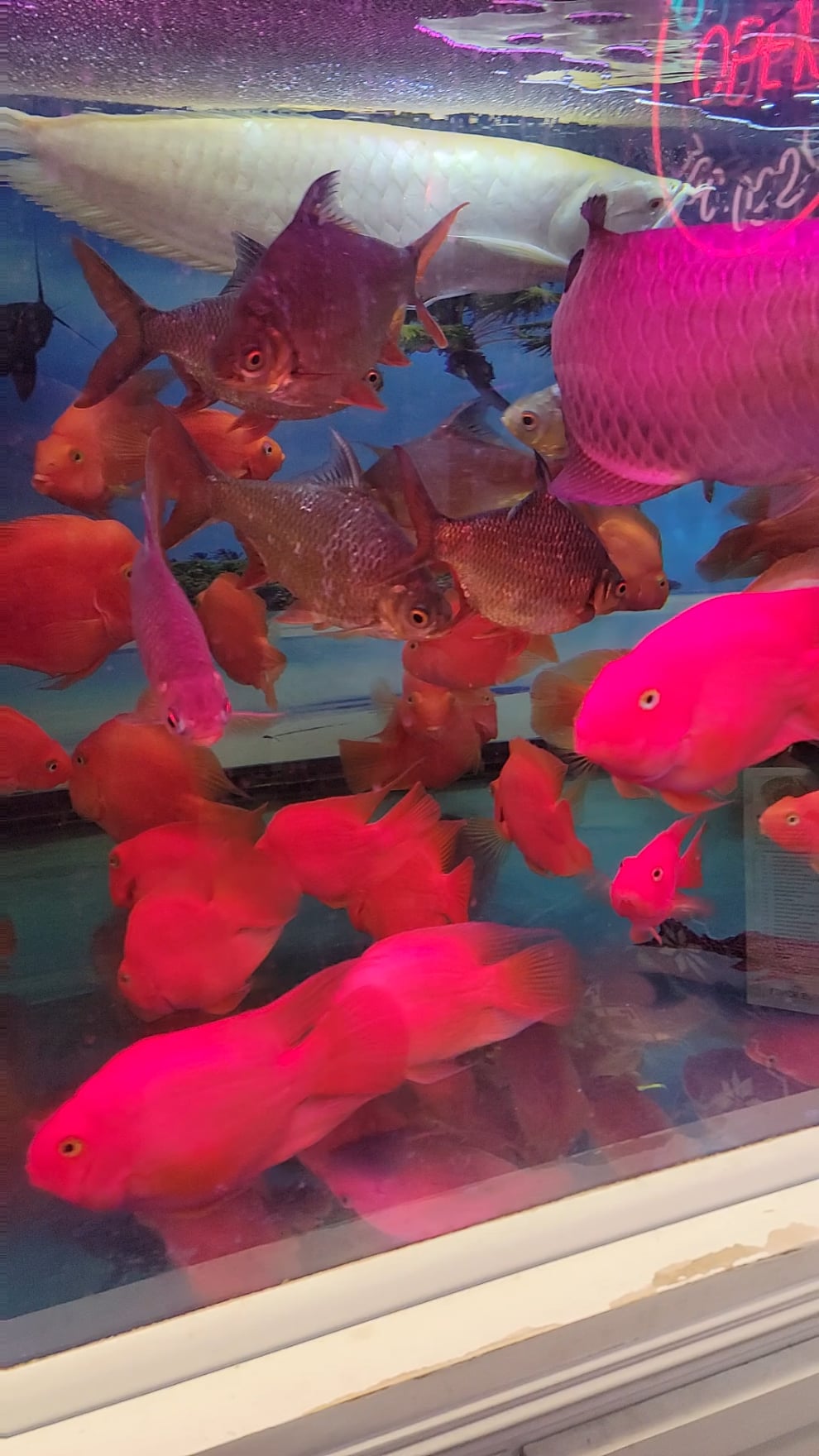 I mean realistically they are probably doing massive and frequent water changes. So they’re probably healthy, those are parrots (I think?) and they look good, obviously not ideal for swimming space but they seem fine. Those are generally pretty expensive fish so I doubt they are neglecting them. Asian cultures are usually pretty good with fish from what I’ve seen. I don’t see the point in dragging a small business over this, seems excessive. If the tank was full of dead fish and they didn’t look as good as they do maybe I’d consider saying something but not in a review for the business itself, majority of the population don’t know or care about fish care so seeing it mentioned in a review that they are likely looking at to see how the food or service is seems pointless