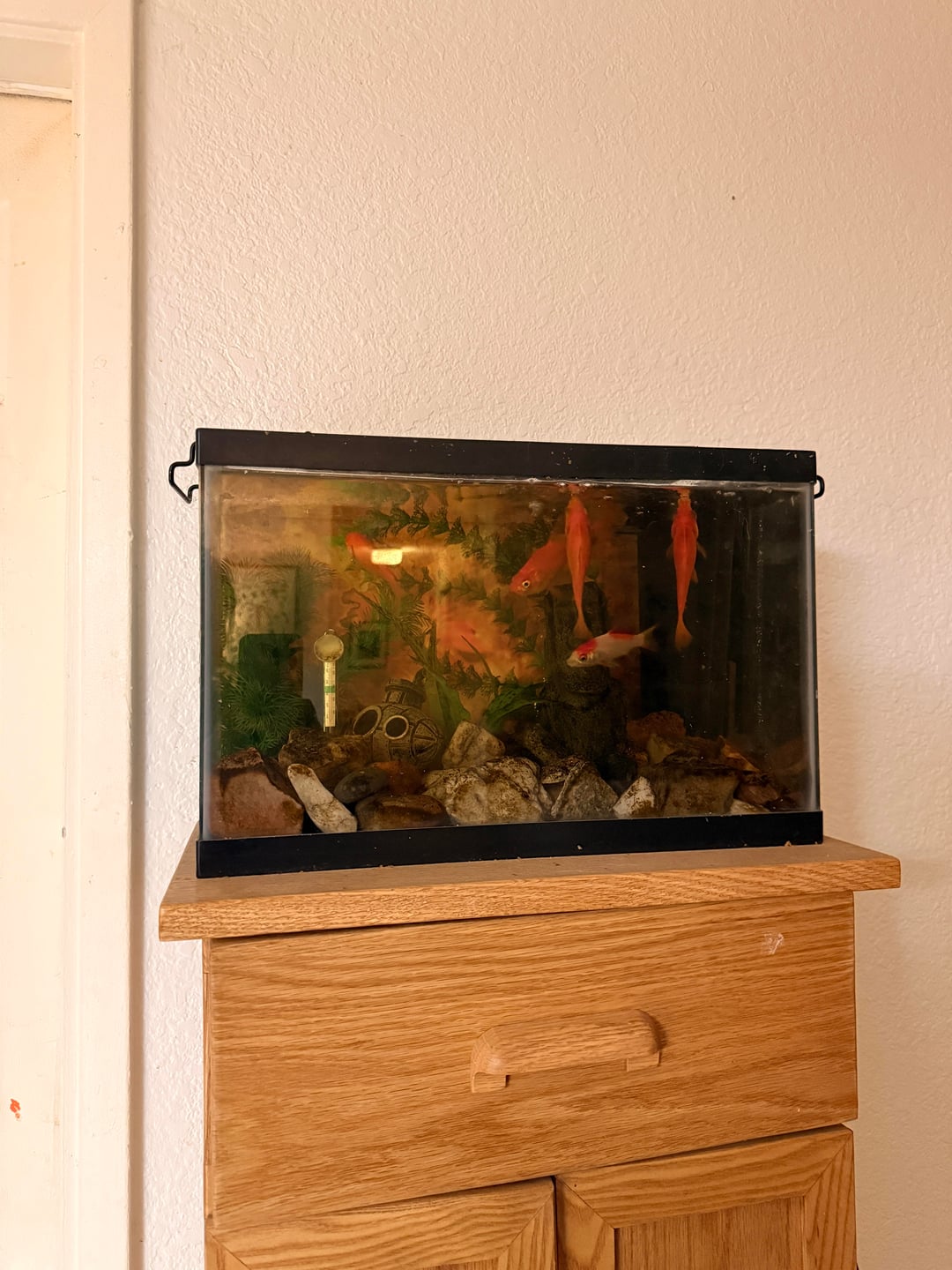 Hi all, a couple of days ago I made this post requesting advice about my relative’s common gold fish housed in a 5.5 gallon fish tank. I asked what would improve the fishes current condition, and what options they might have for a better life. I was honestly a bit affected/anxious about these little guys, so decided to be open with my family member. I explained I’d been up late stressing, and my reasons why. Then I asked if I could add a couple things to the tank (as per your suggestions).