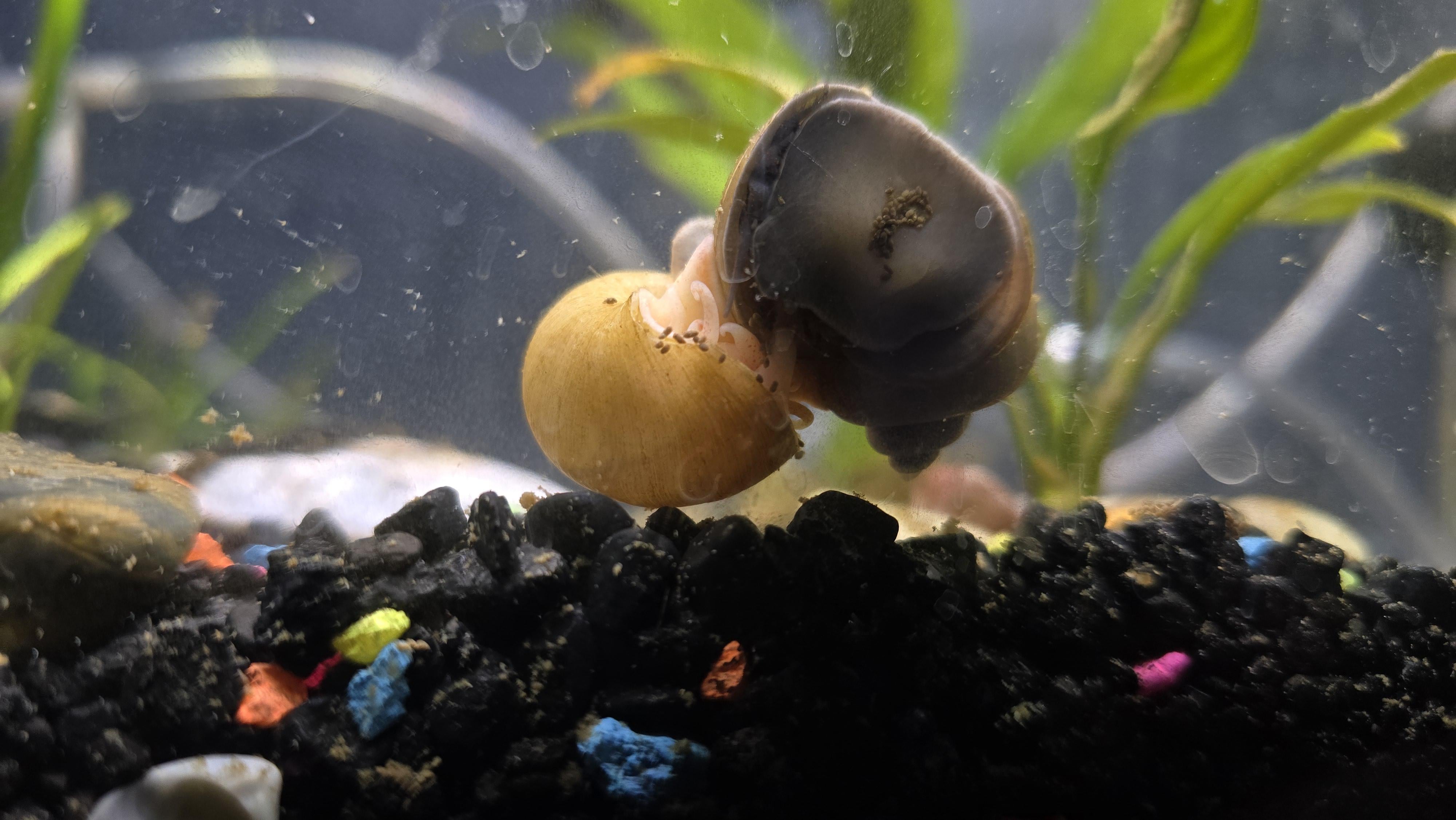 Brought 4 mystery snails about a week ago and noticed these 2 are always on eachother literally.. today i find them like this and now theres very small brown things around (eggs? Poop?) Any advice is appreciated Posted by ThrowAway_Turtle17