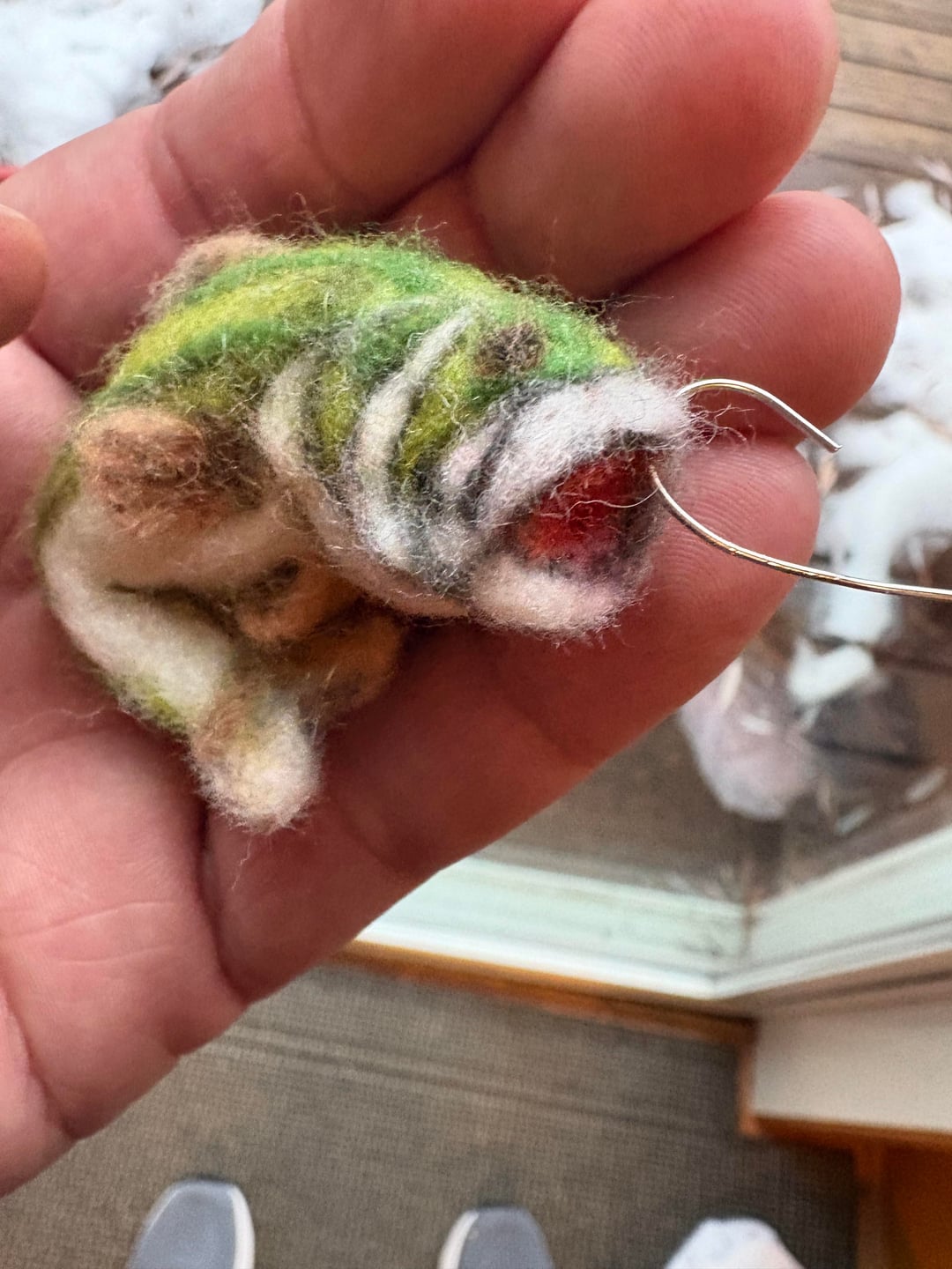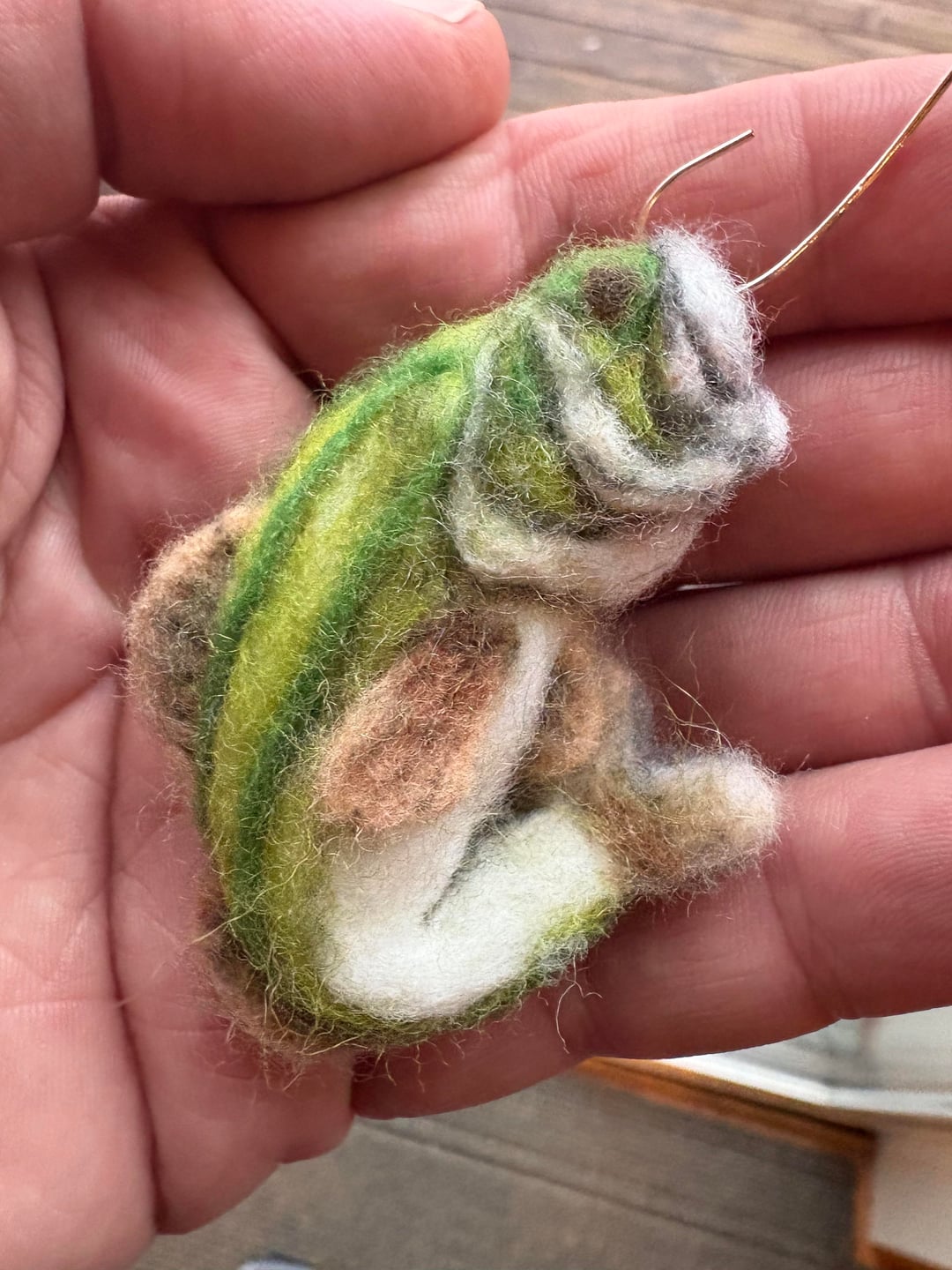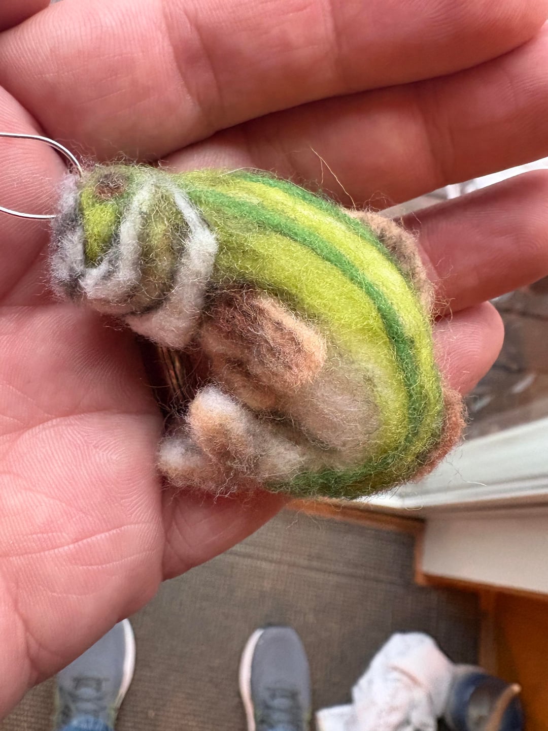 Birthday gift from my kid… took them about 2hrs to create with a felting needle and some wool. My new good luck charm!