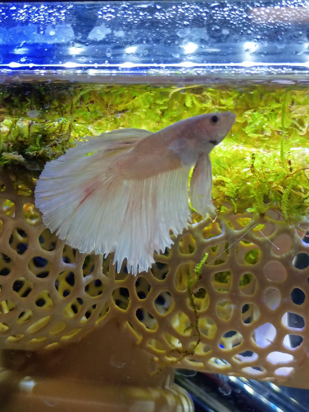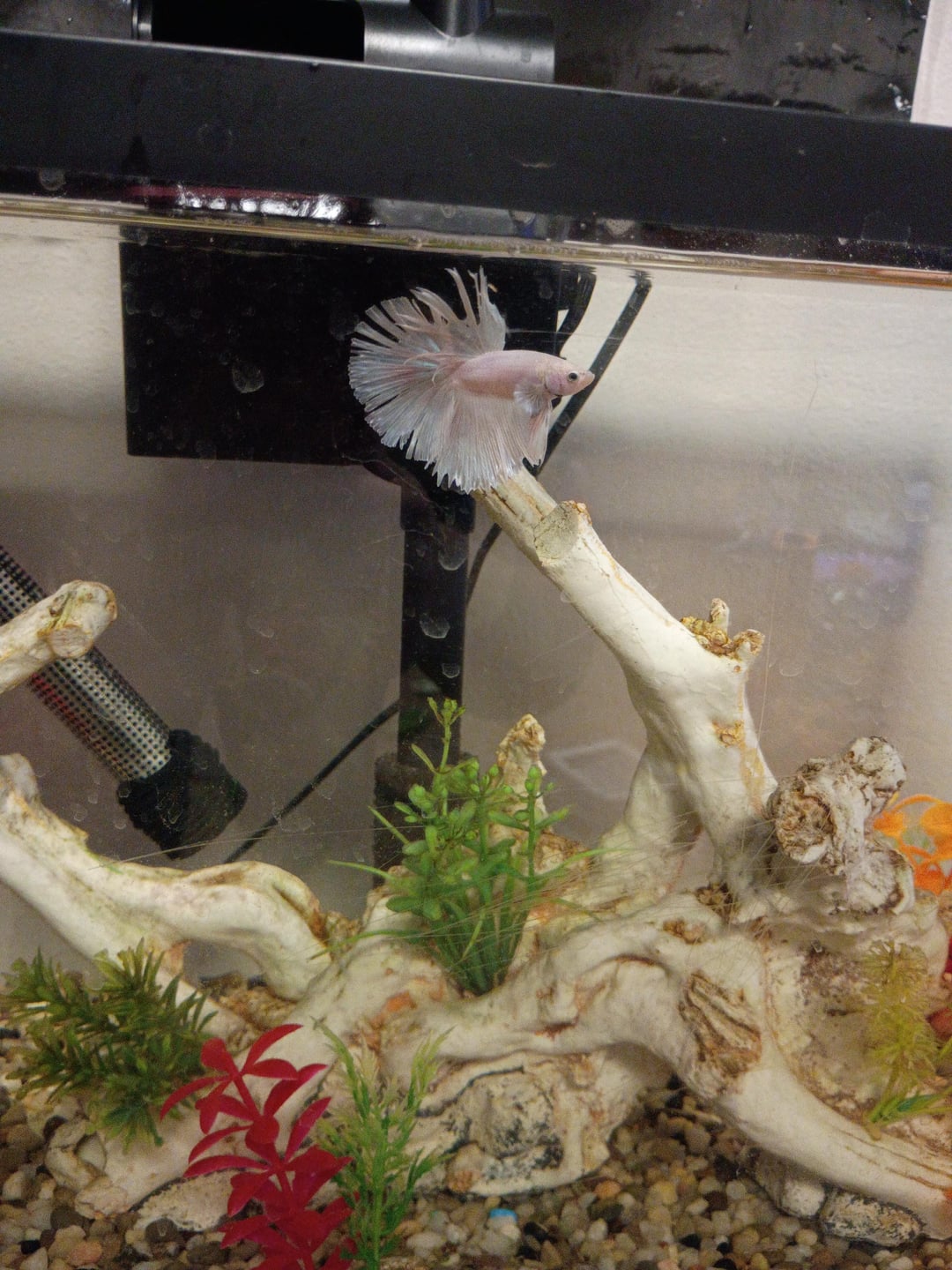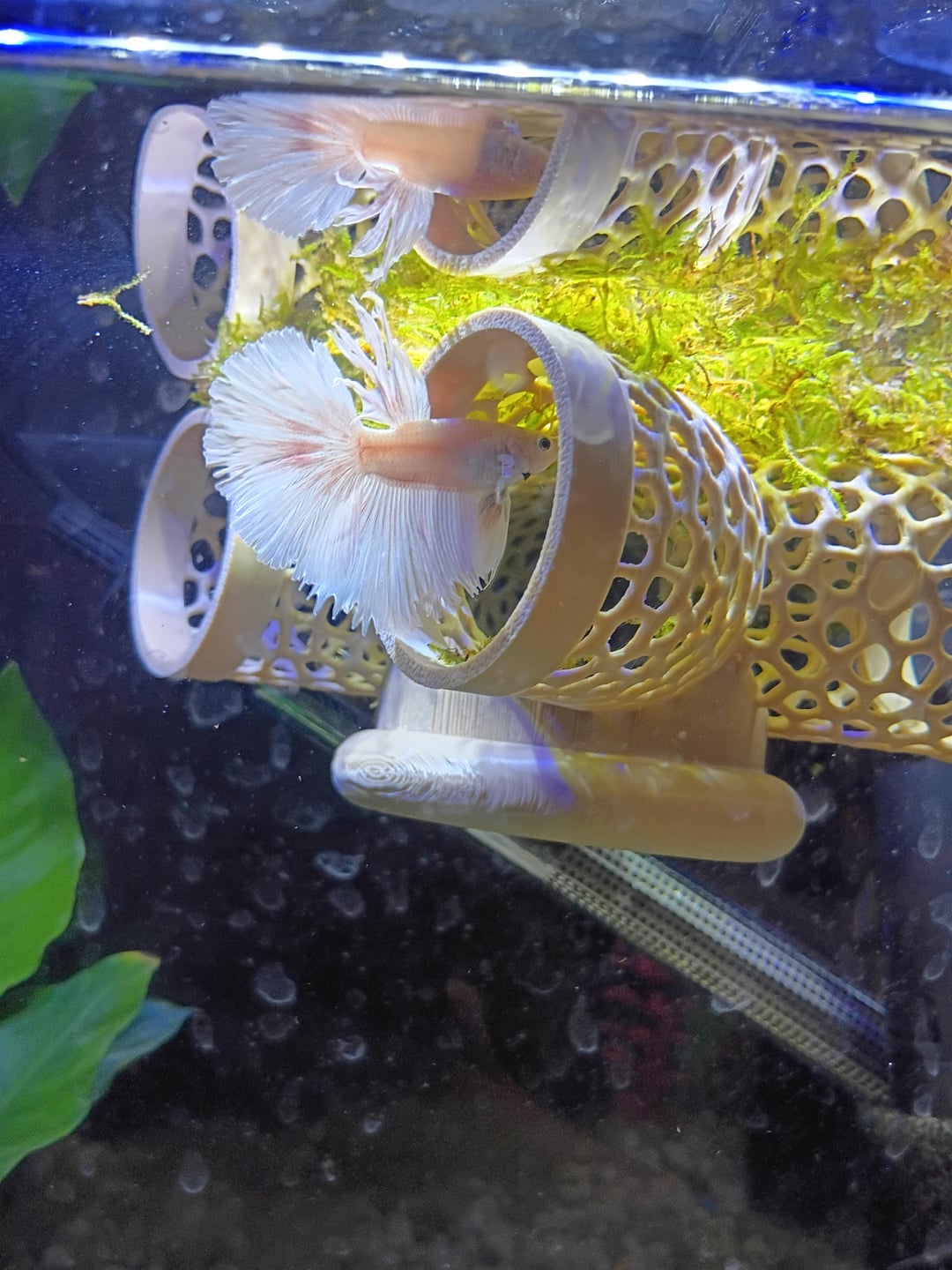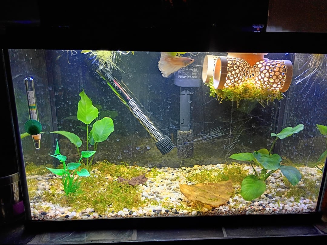 Hey everyone, meet Steve. He is recovering from a bad case of torn fins. The moment I found him with half of his dorsal fin missing, I rushed to the store to make sure it wasn't due to fin rot and I've begun making the switch to all live plants in my four tanks. He is currently in a hospital type set-up and I've slowly been introducing new plants. Right now, he has 2 anubias nanas, java moss, a java moss glued floating silicone toy, frogbit, and an Indian almond leaf. Do you guys know any good plants that I could add to his set-up or any of my other tanks? I have two 10gal and two 30gal. He's also with my small bristlenose pleco if y'all have any ideas that she might like