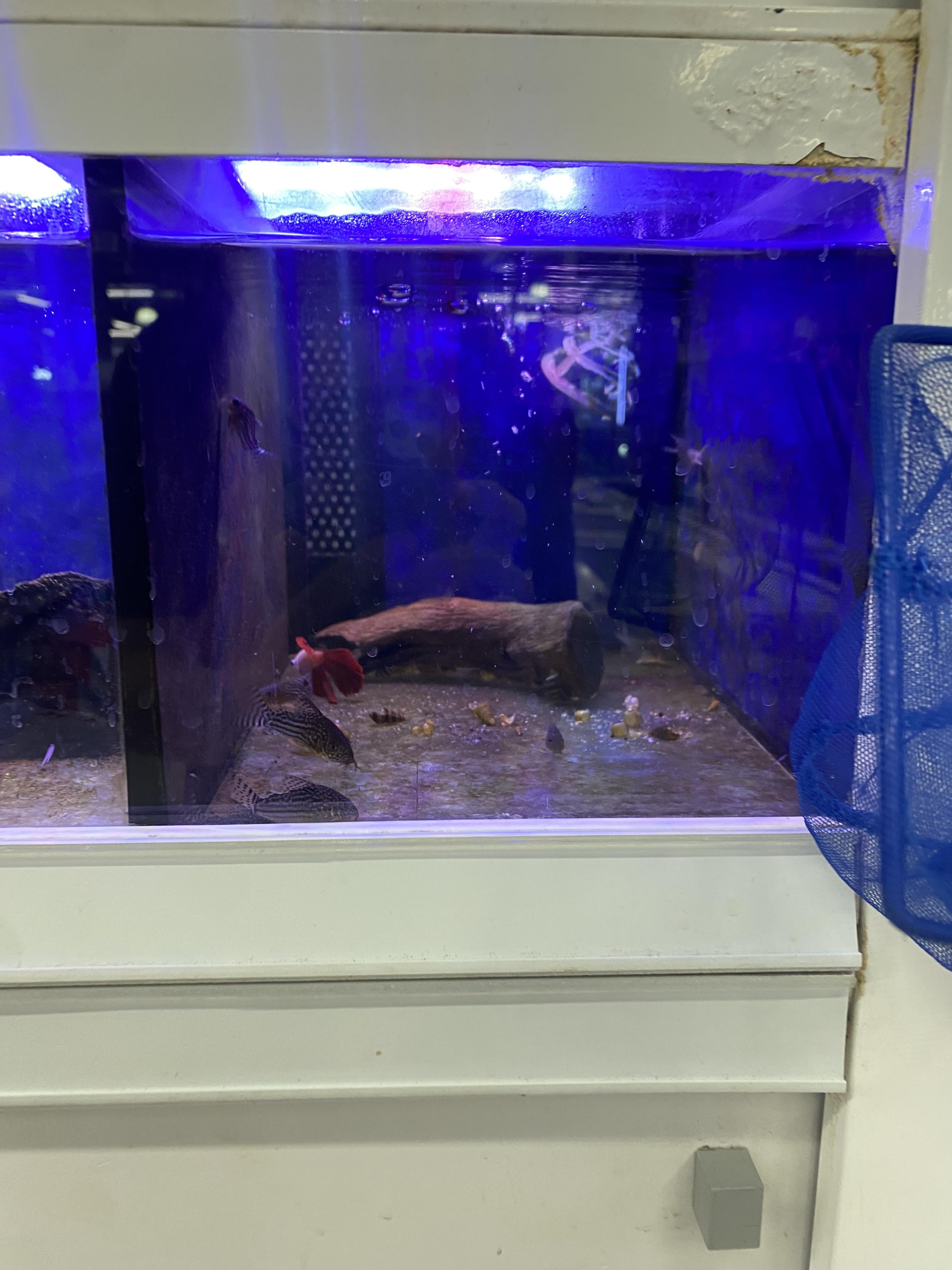 Betta Fish: Saw at LFS. Not a huge tank but way better than cups. I also think psychologically it helps people understand that bettas need bigger tanks.